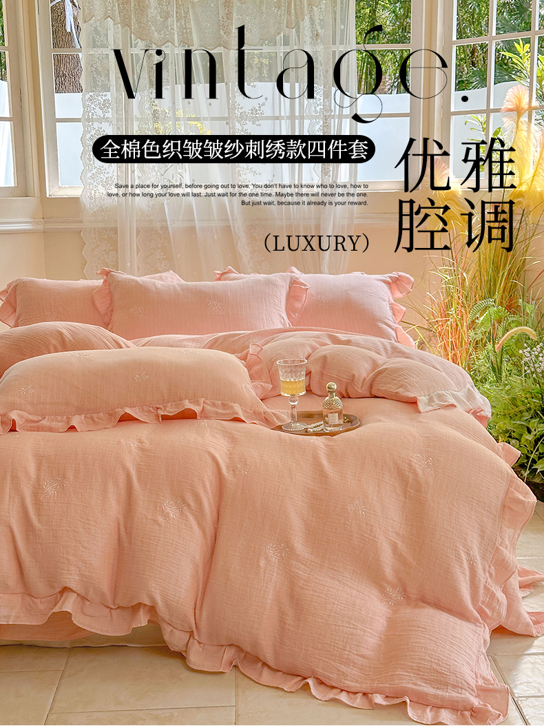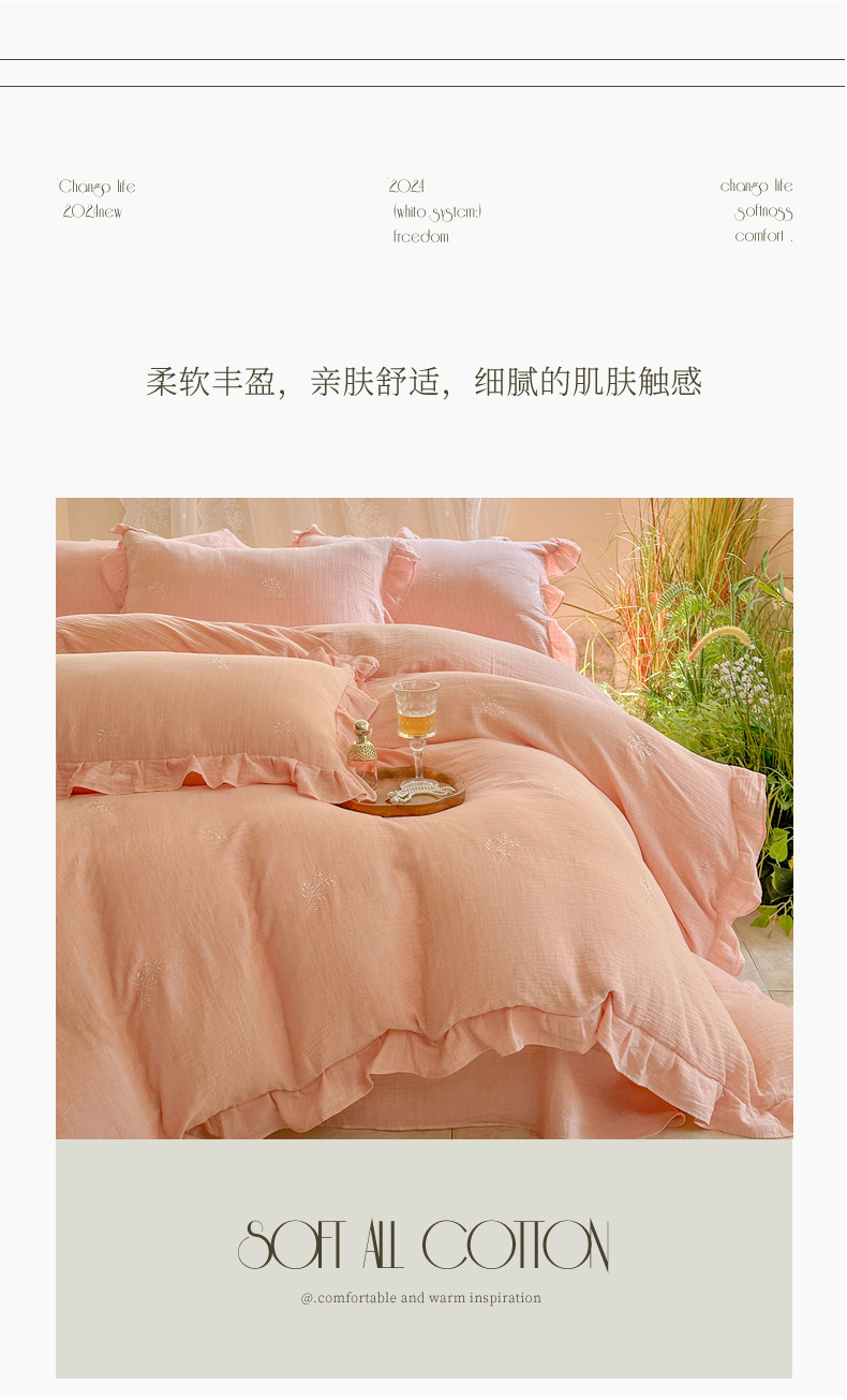 (总)木楌 2024全棉皱皱纱荷叶边刺绣工艺款四件套,爱恋,蝶翼,米菲,乔伊斯花园,文汐,星辰,米诺,挽秋,伊人,知梦