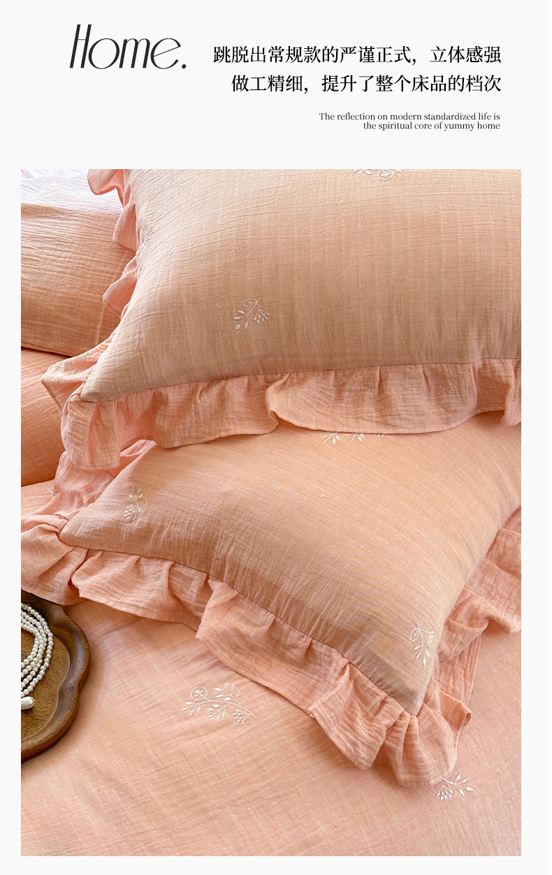 商品名称:2025新品全棉色织皱皱纱刺绣款四件套 稻香