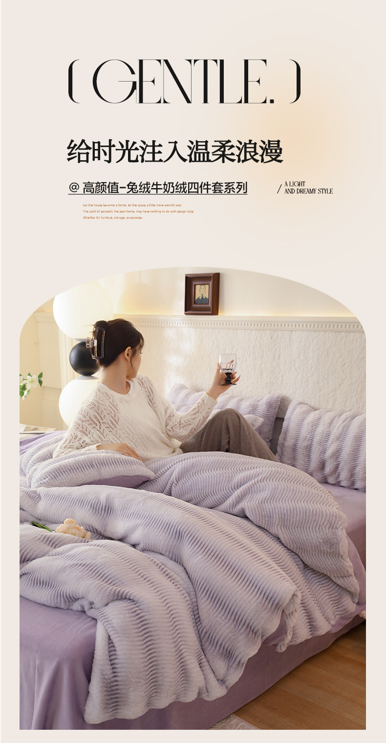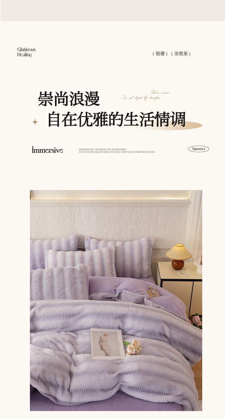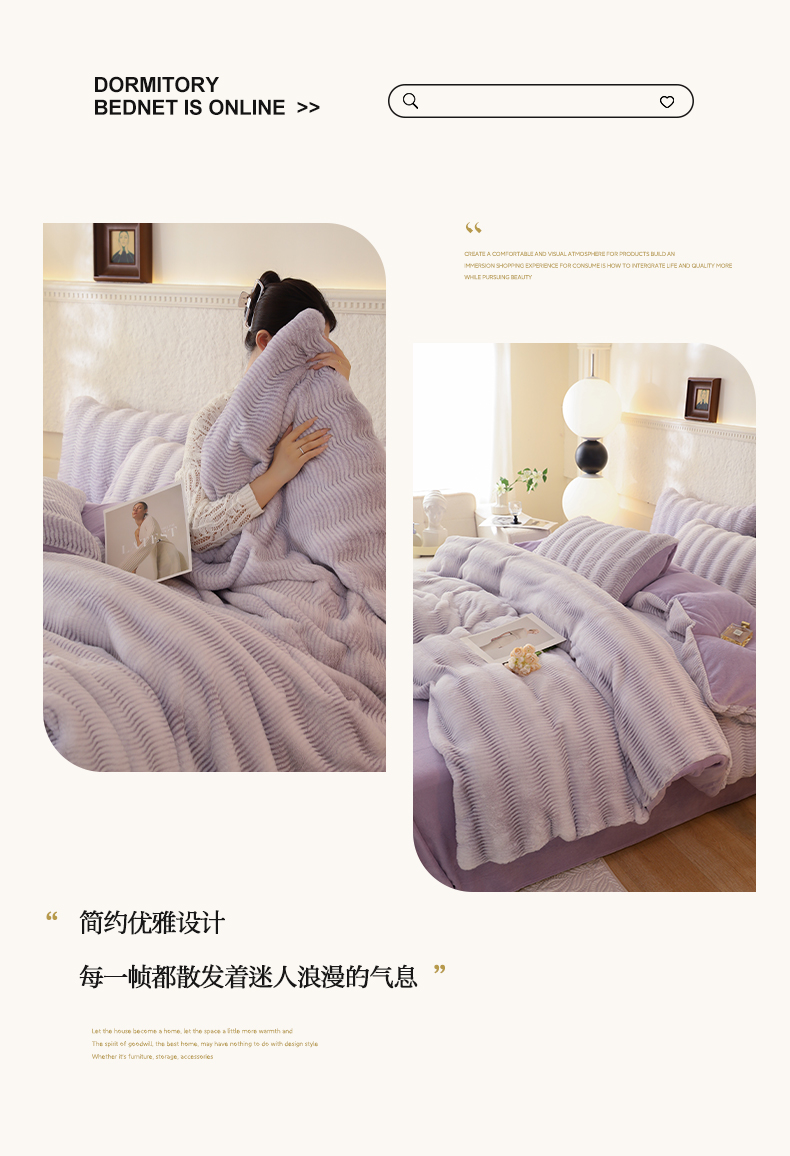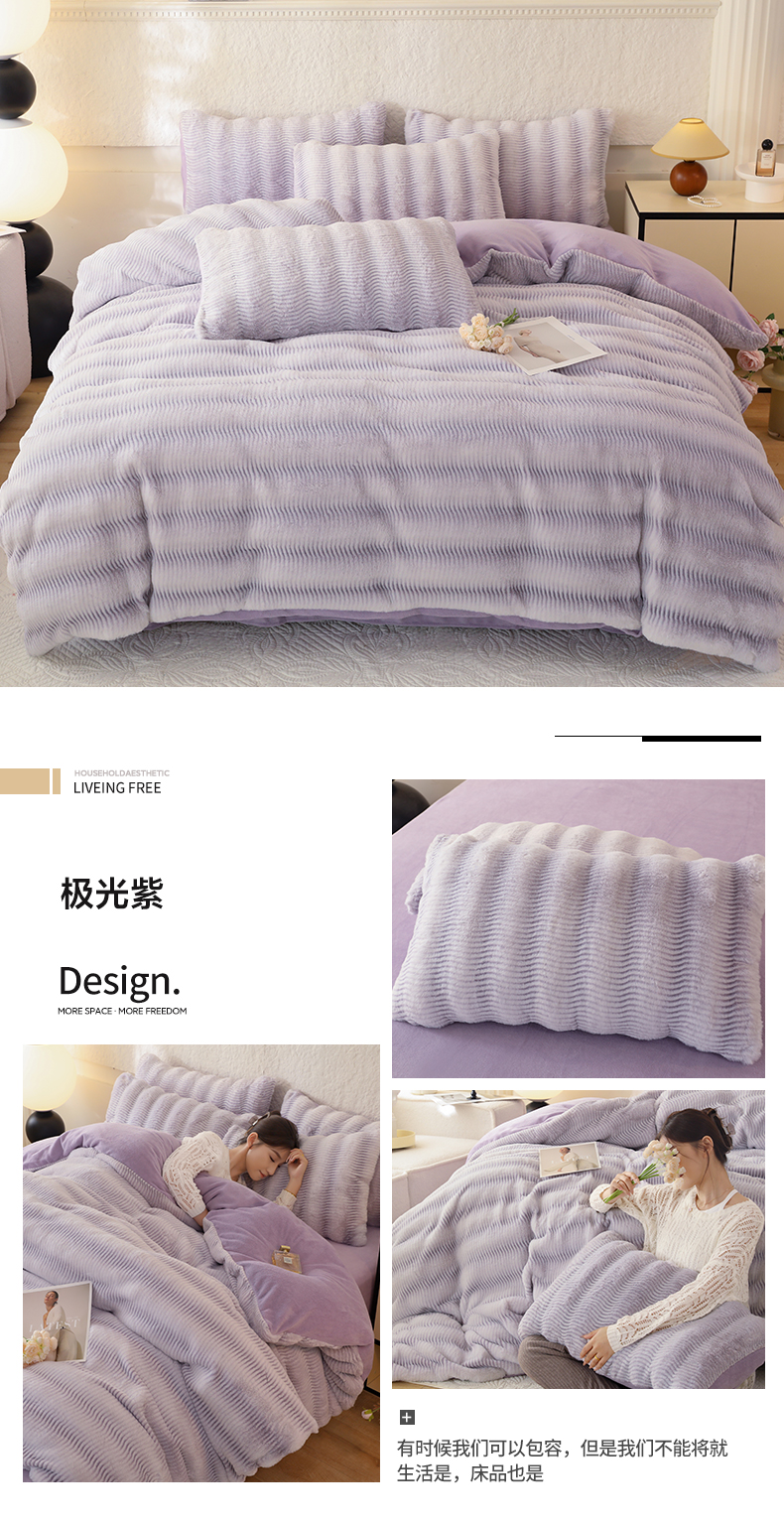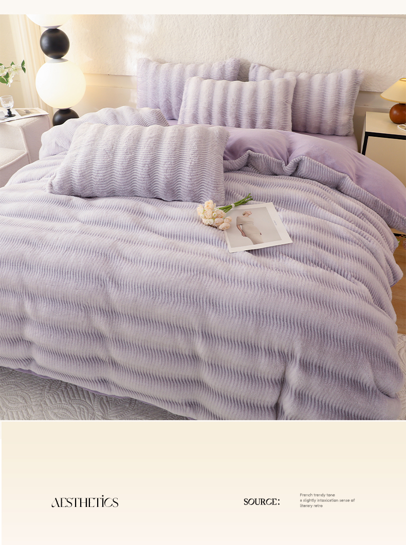 当前位置: 91家纺网 > 商品网购 > 床品套件 > 四件套 > 兔毛绒四件套 > 逸尚阁 2024新款极奢兔绒牛奶绒四件套 极光紫