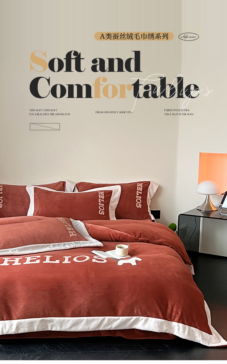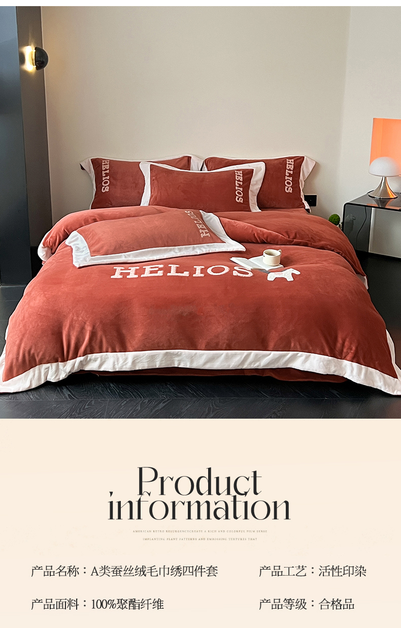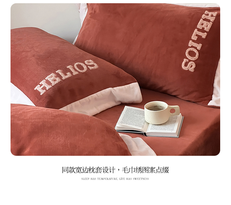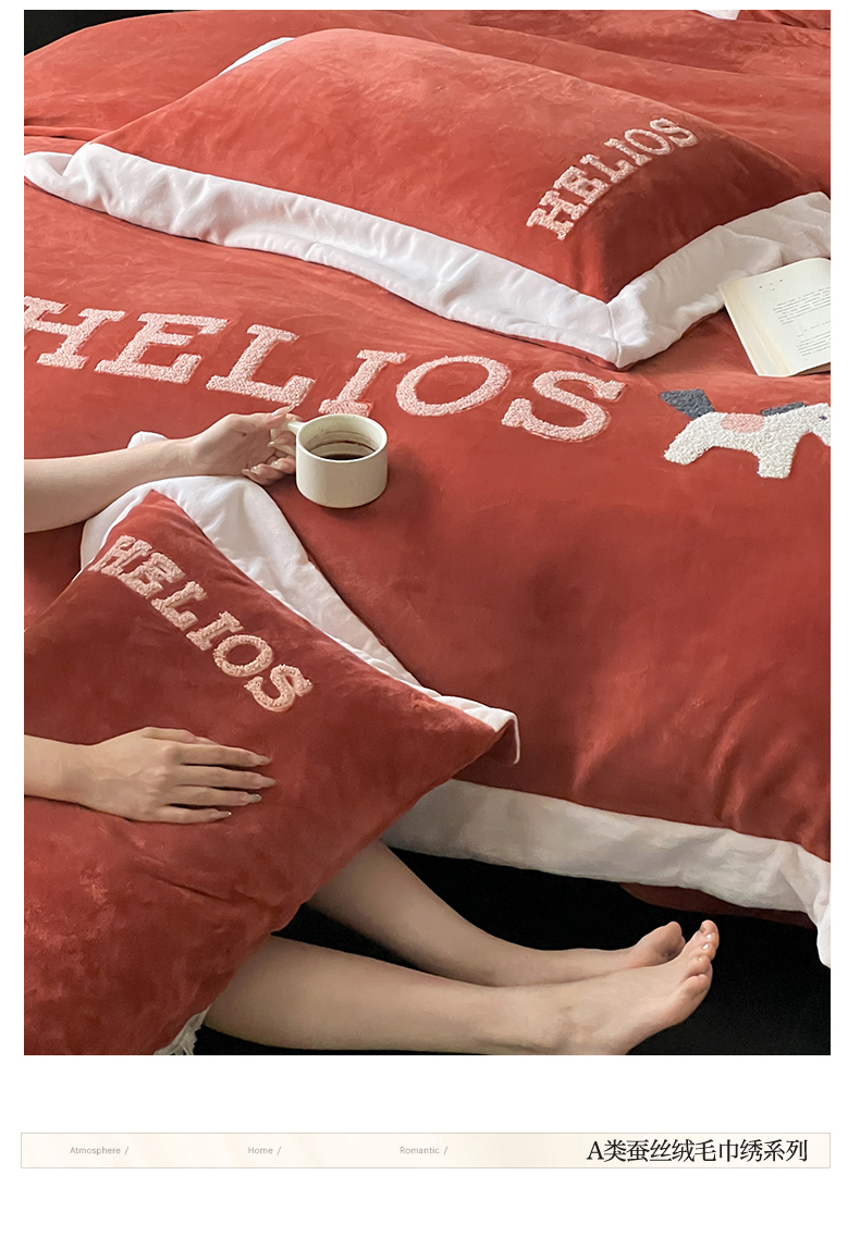 商品名称:名品优仓 2024新款高克重牛奶绒毛巾绣四件套-莫安迪 莫安迪-太妃红
