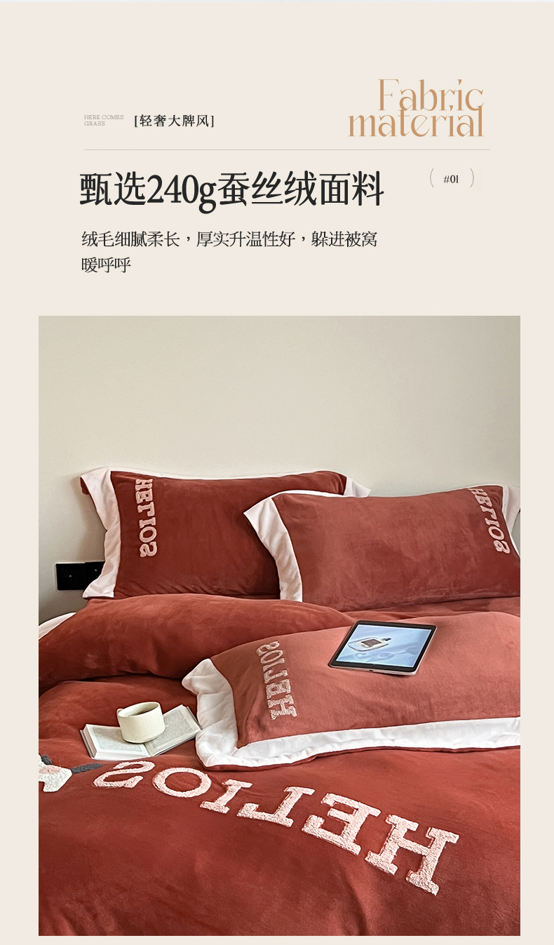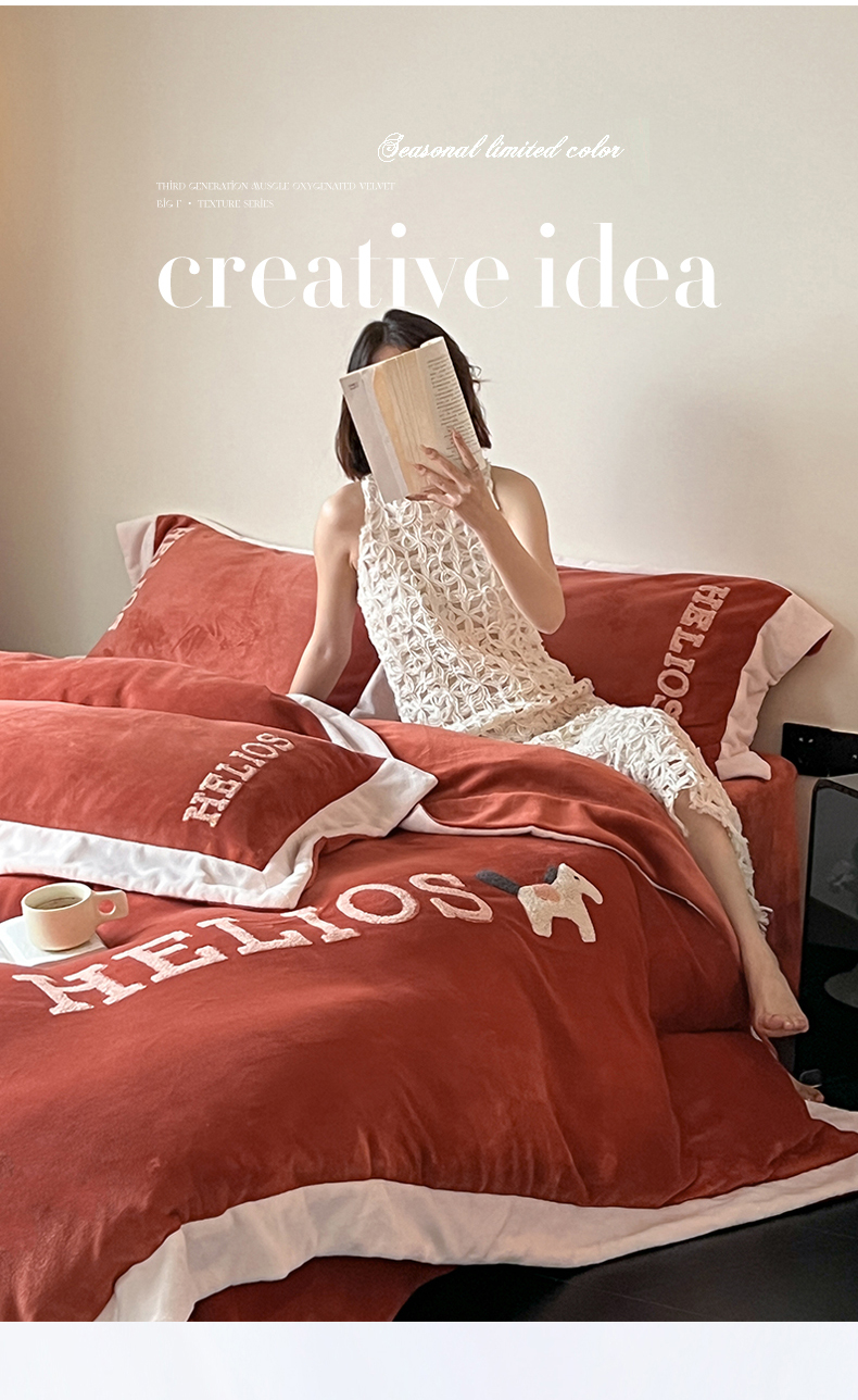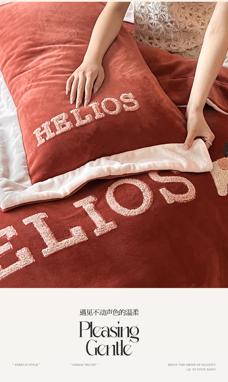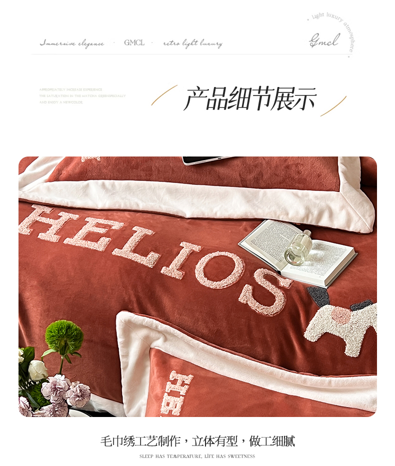 商品名称:名品优仓 2024新款高克重牛奶绒毛巾绣四件套-莫安迪 莫安迪-太妃红