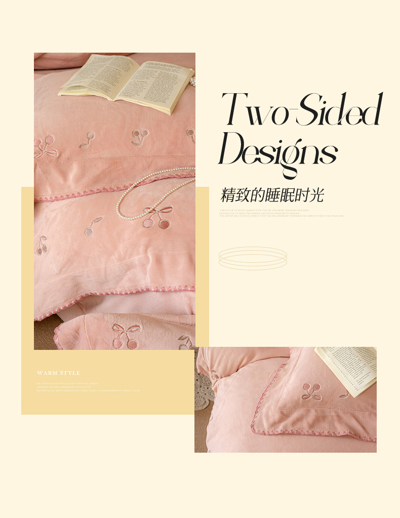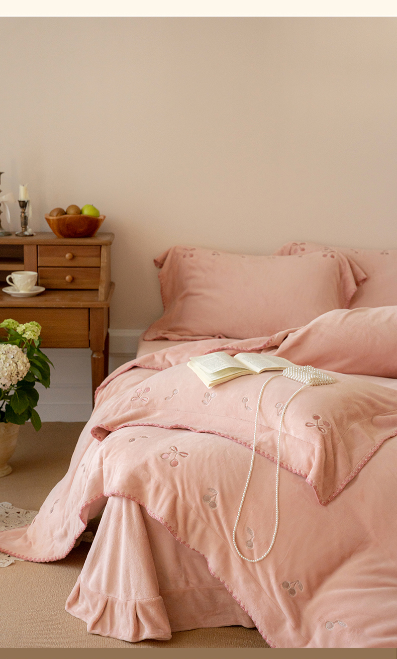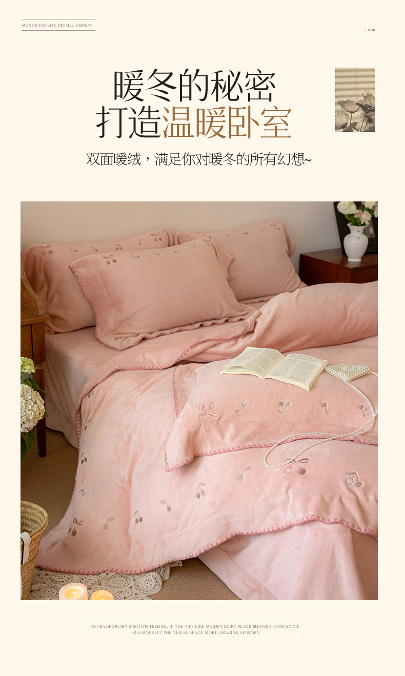 名品优仓 2024新款高克重牛奶绒绣花四件套-樱桃之玥 樱桃之玥-梦豆沙