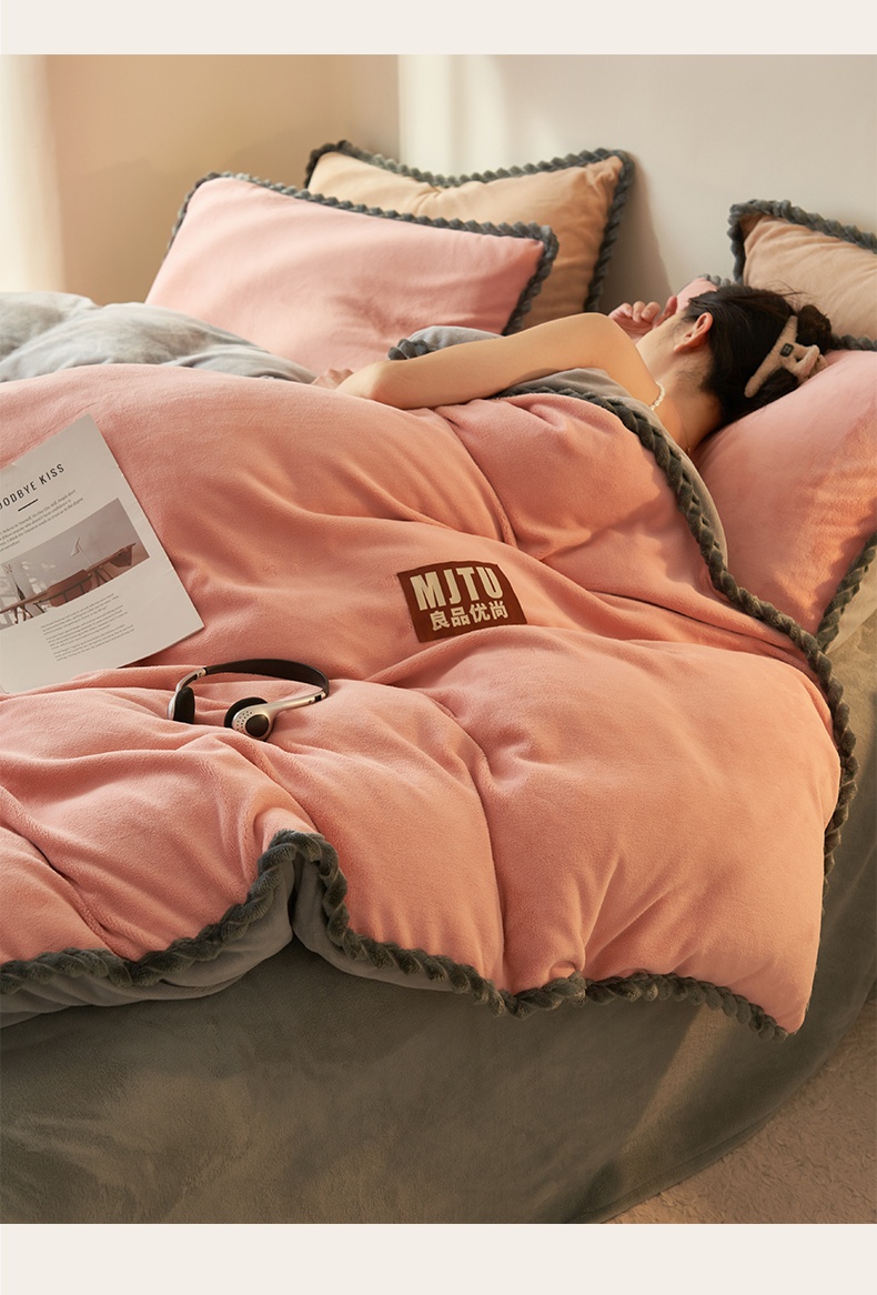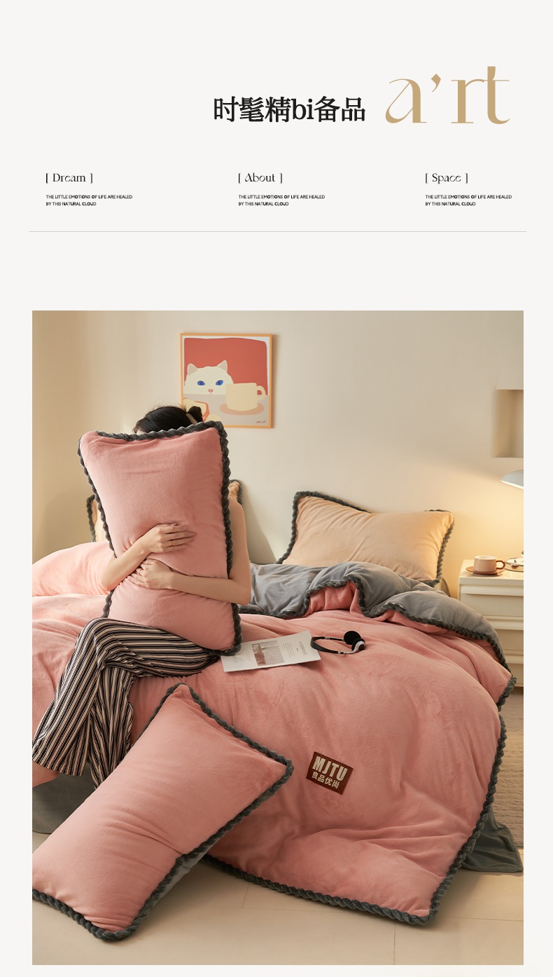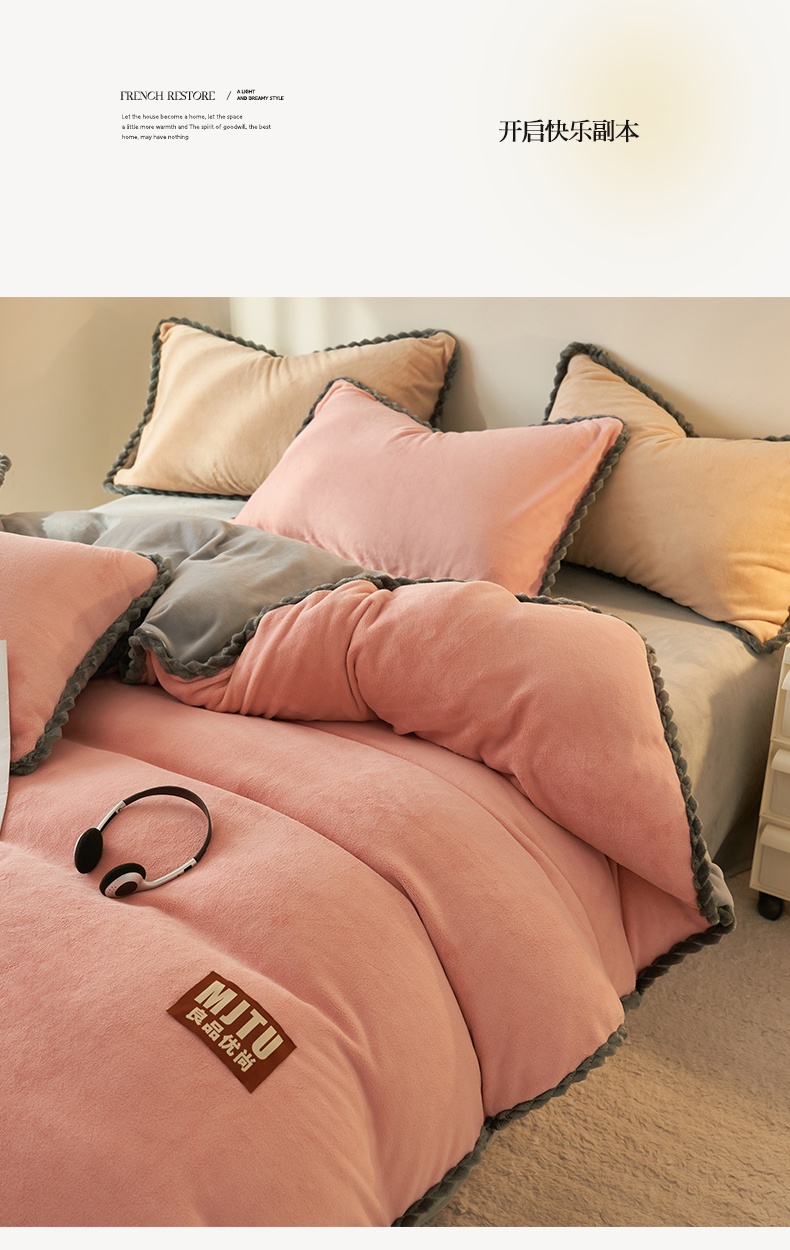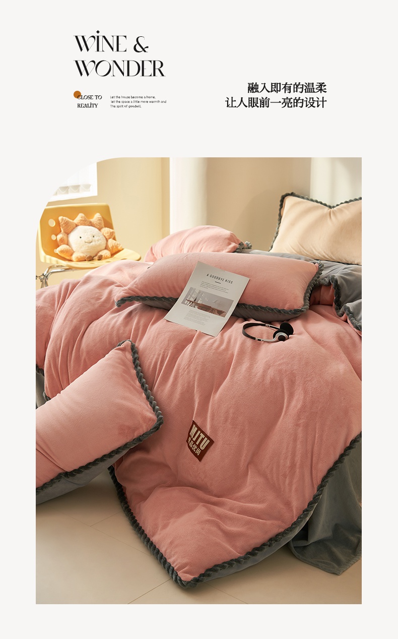 • 91家纺网 家纺一手货源 找家纺 晨曦家纺 2024新款日系简约小包边牛奶绒单被套 简约-豆沙浅灰