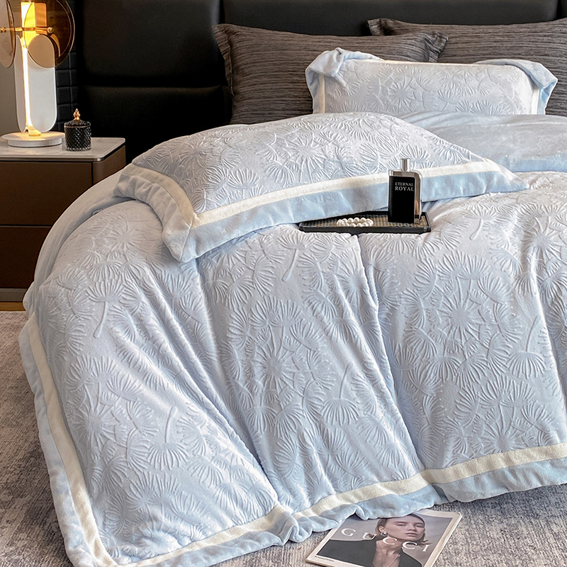 2025新款秋冬AB版250克全消光立体雕花烂花牛奶绒双拼角四件套-璀璨烟花 璀璨烟花-浅天蓝