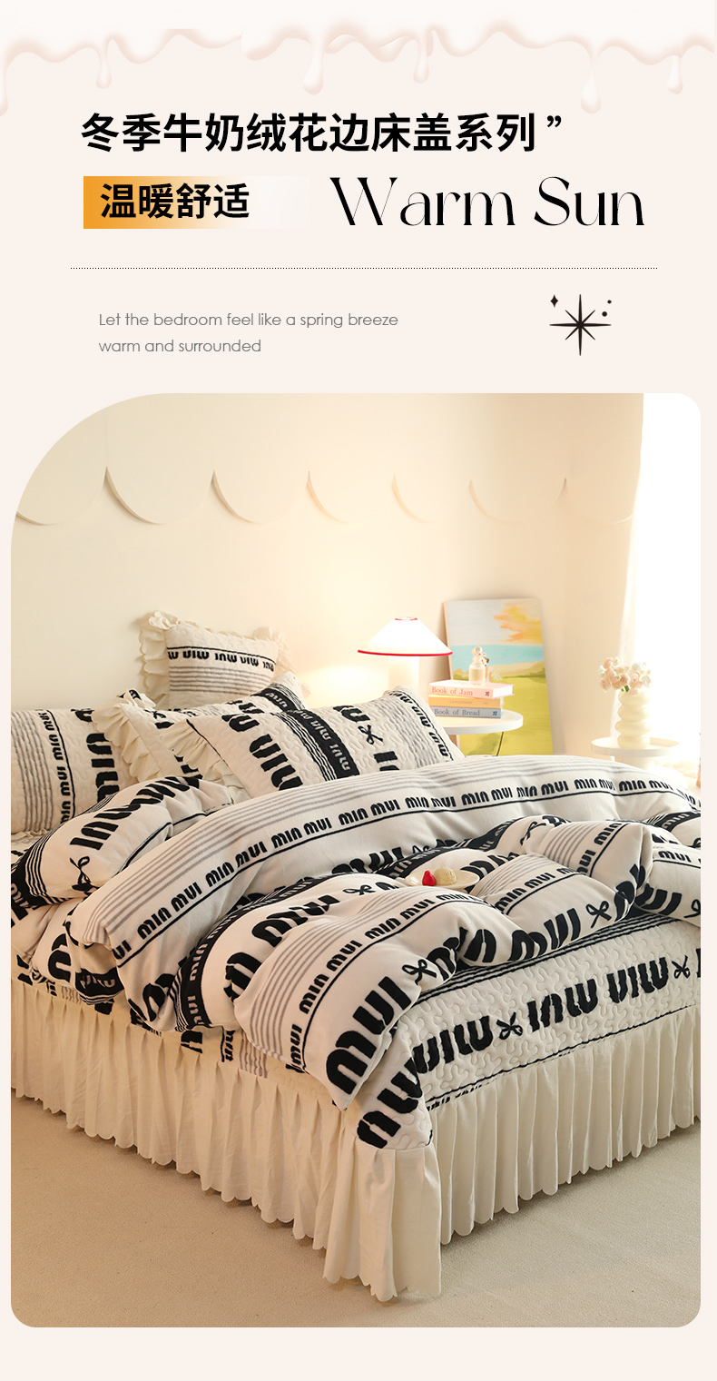 (总)金盛皇朝家纺 2024新款双层花边牛奶绒夹棉床盖四件套,繁花米兔,花影如梦,萌宝熊猫,甜甜宝贝,兔兔吉祥,心心相印,悠悠米咖,紫韵格调