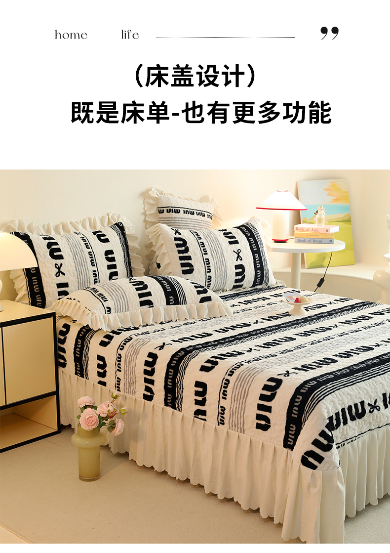 商品名称:(总)金盛皇朝家纺 2024秋冬新品高克重牛奶绒夹棉花边床盖系列