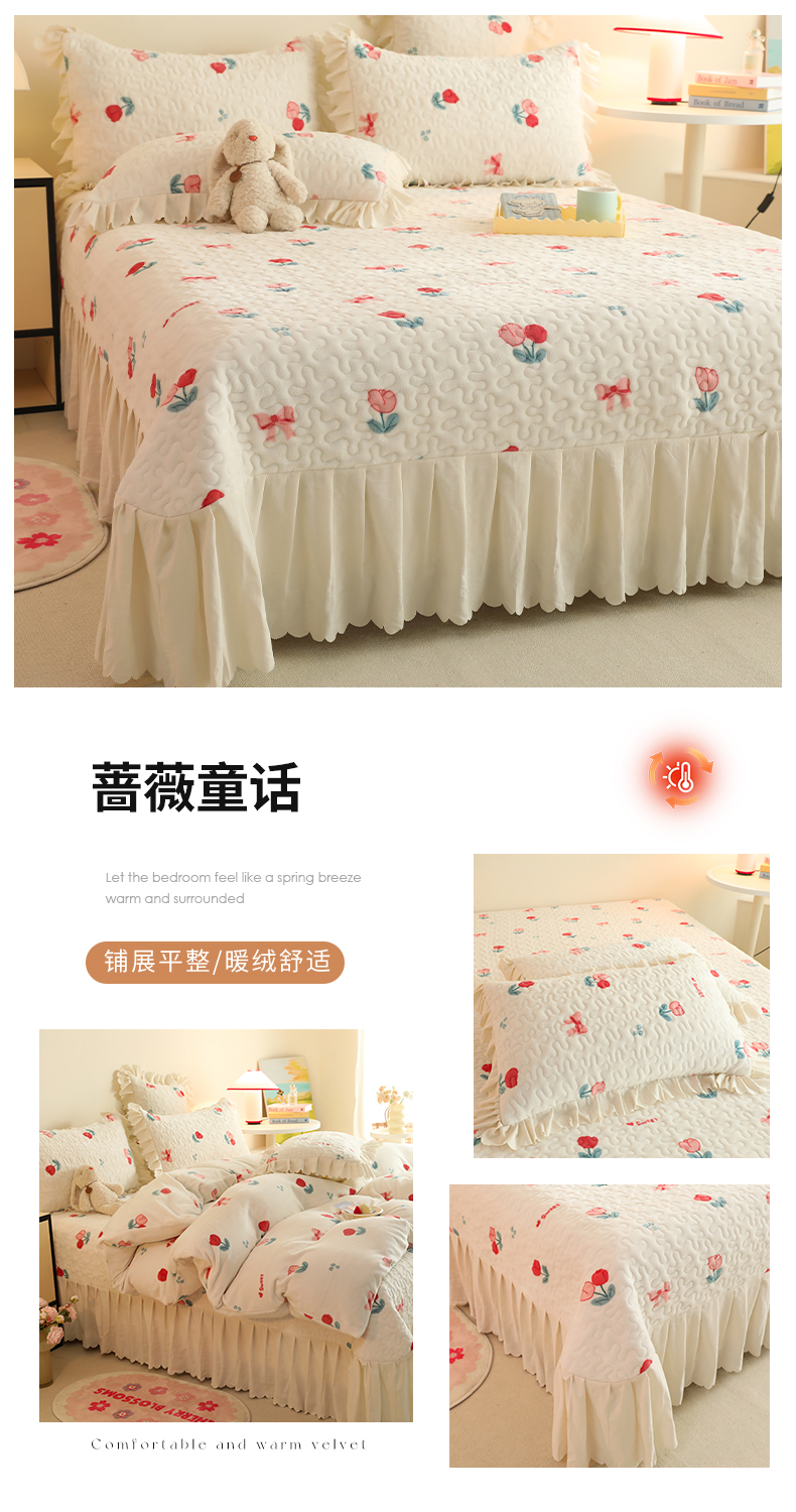 (总)金盛皇朝2025韩版公主风绗绣三层夹棉床盖学生宿舍床单,波点,彩虹桥,果粒橙,灵动花瓣,莫奈花园,小爱心,心动时光