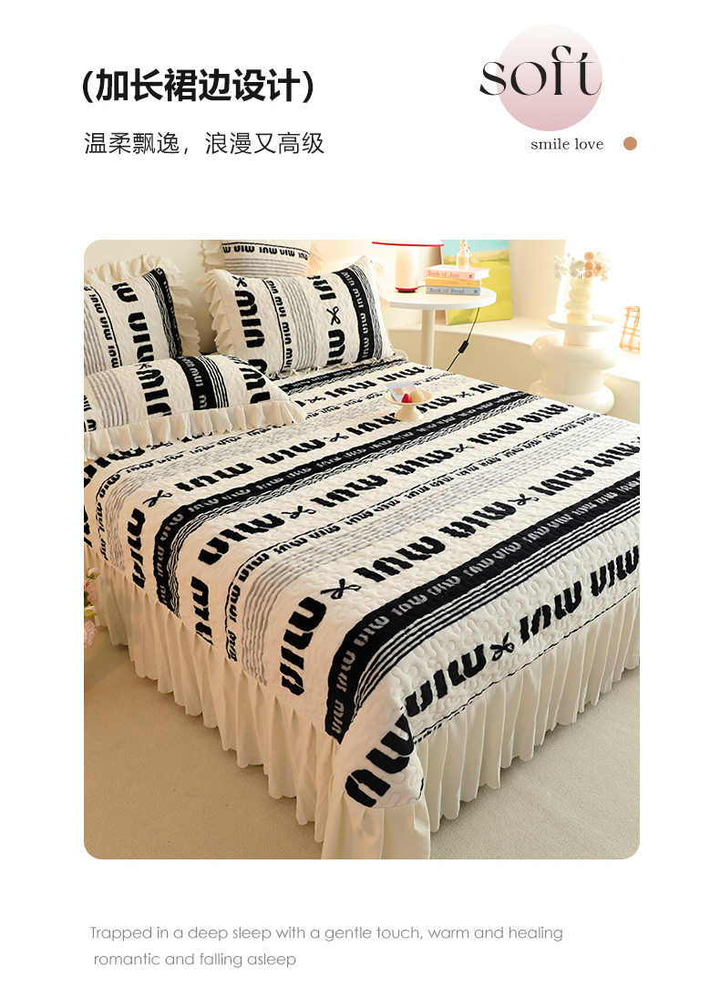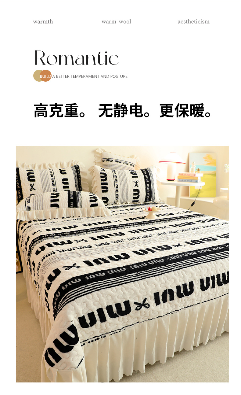 (总)金盛皇朝家纺 2024秋冬新品高克重牛奶绒夹棉花边床盖系列,MIU字母,爱的星辰,花开朵朵,南枝花漾,蔷薇童话,仙草悠悠,幸福美满,幸运波点,紫萱