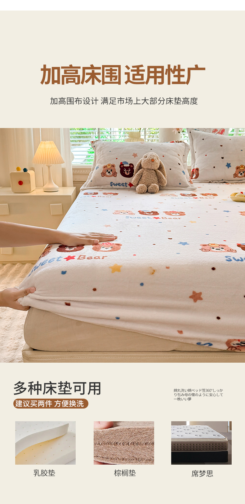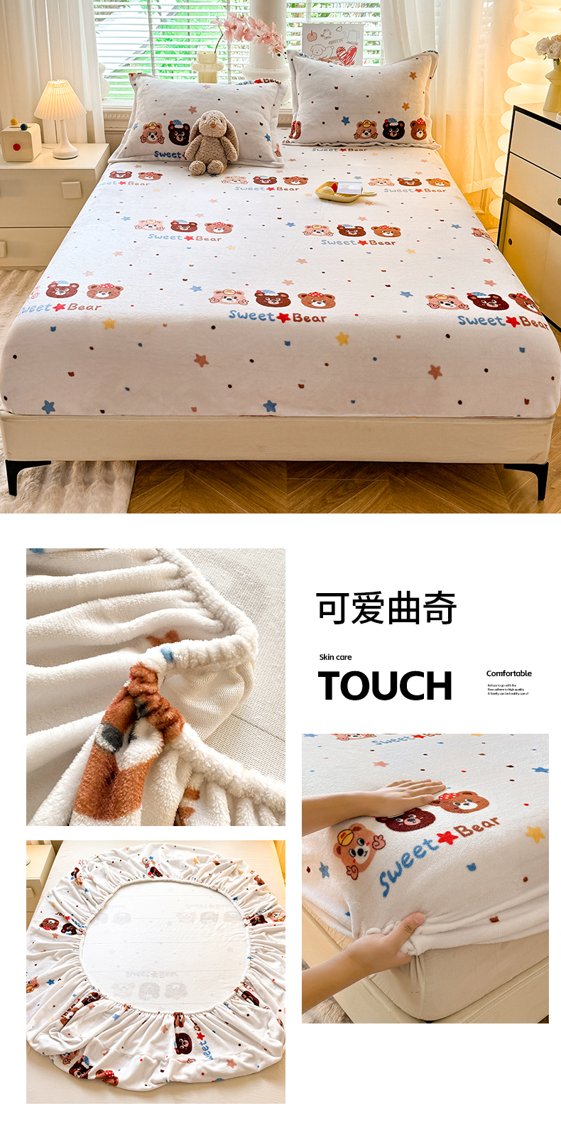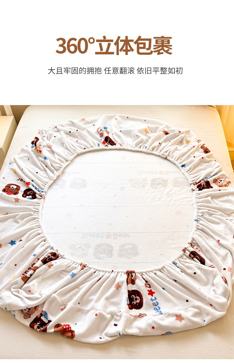 商品名称:妖妖家纺 2024新款200克牛奶绒单床笠 可爱曲奇