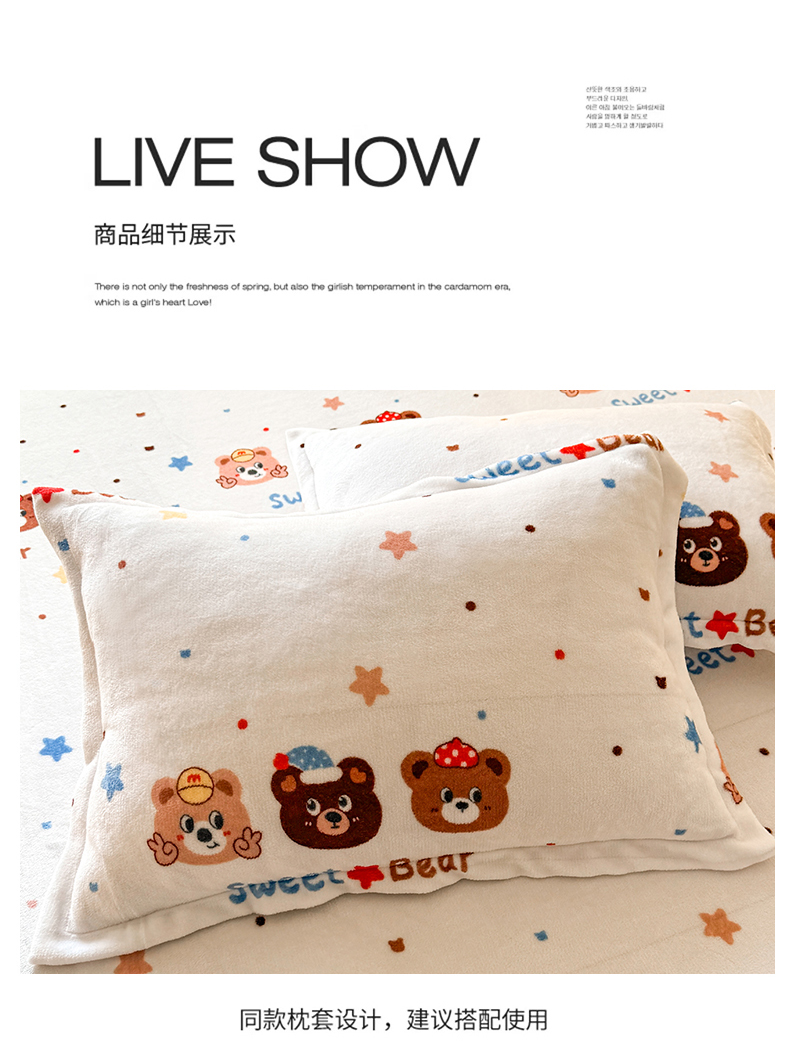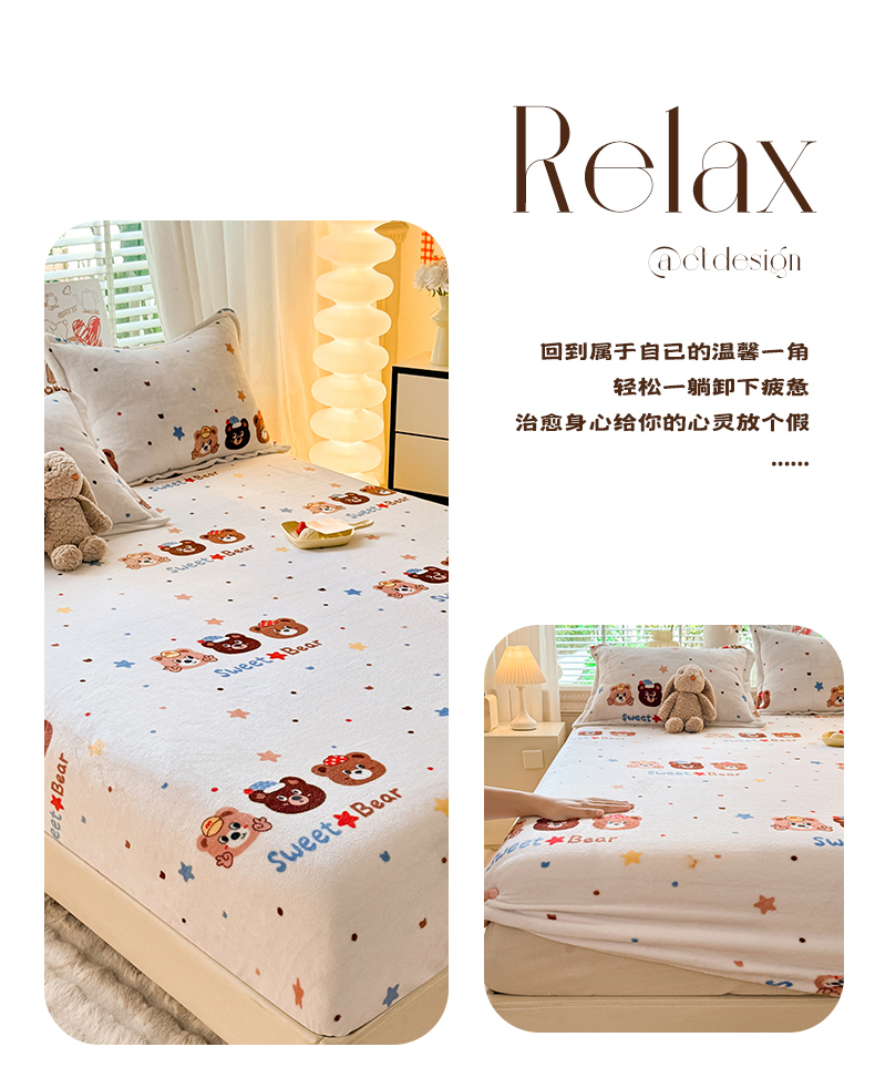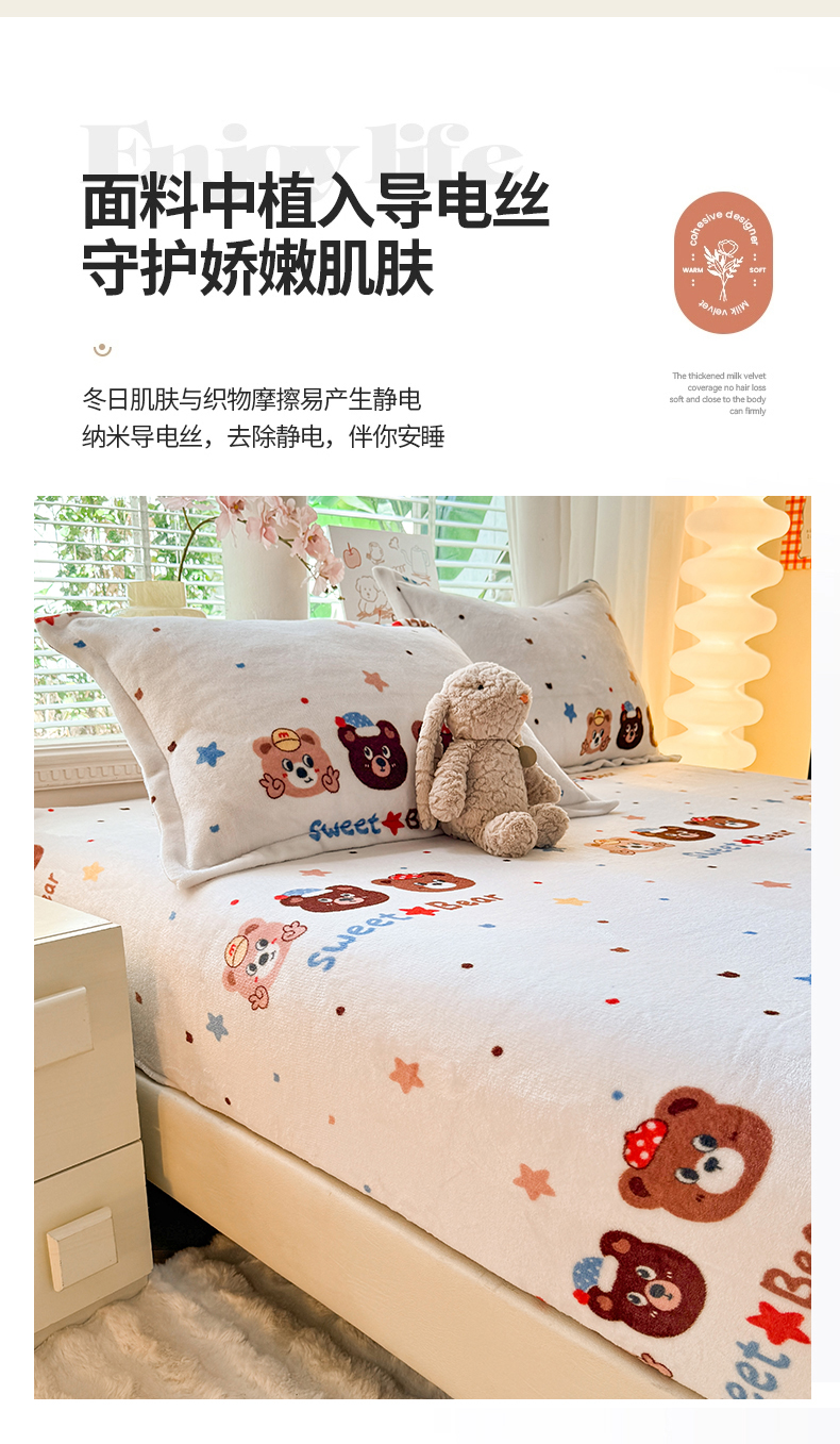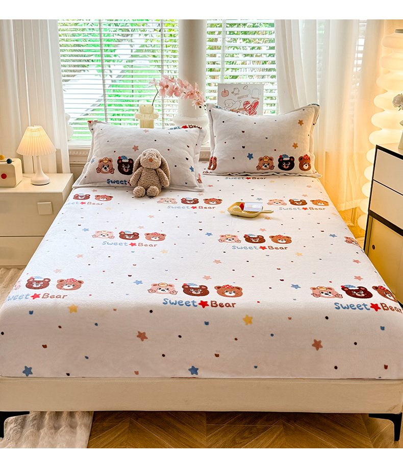 妖妖家纺 2024新款200克牛奶绒单床笠 可爱曲奇