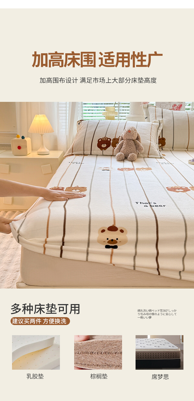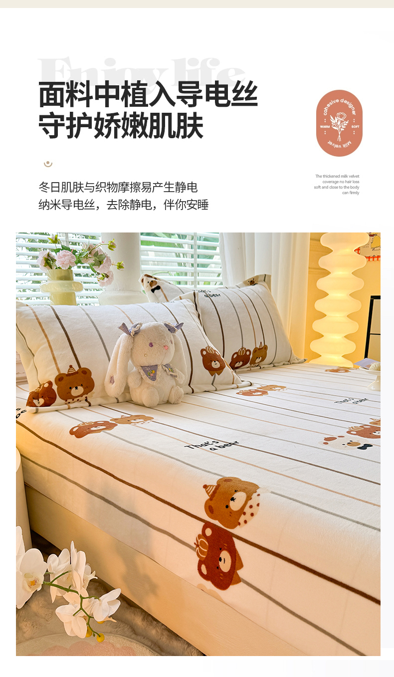 妖妖家纺 2024新款200克牛奶绒单床笠 熊熊游乐园