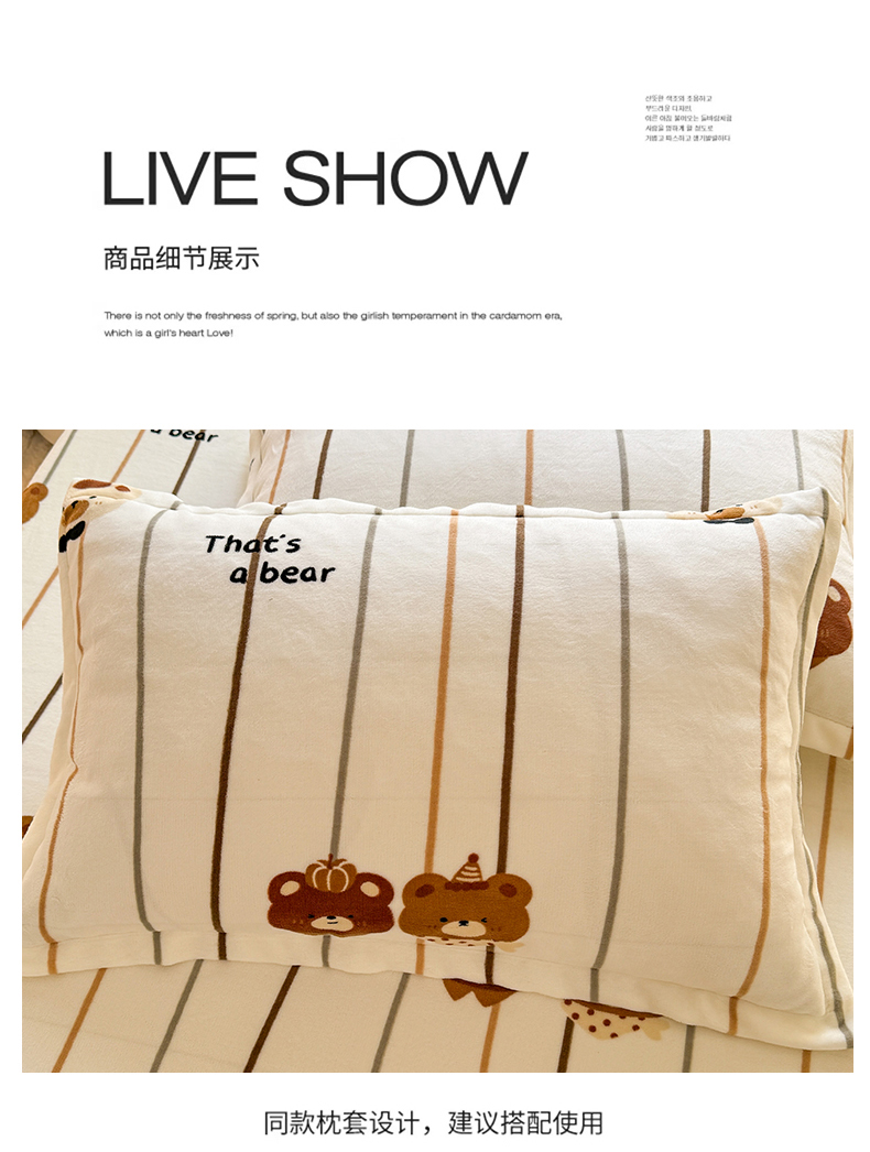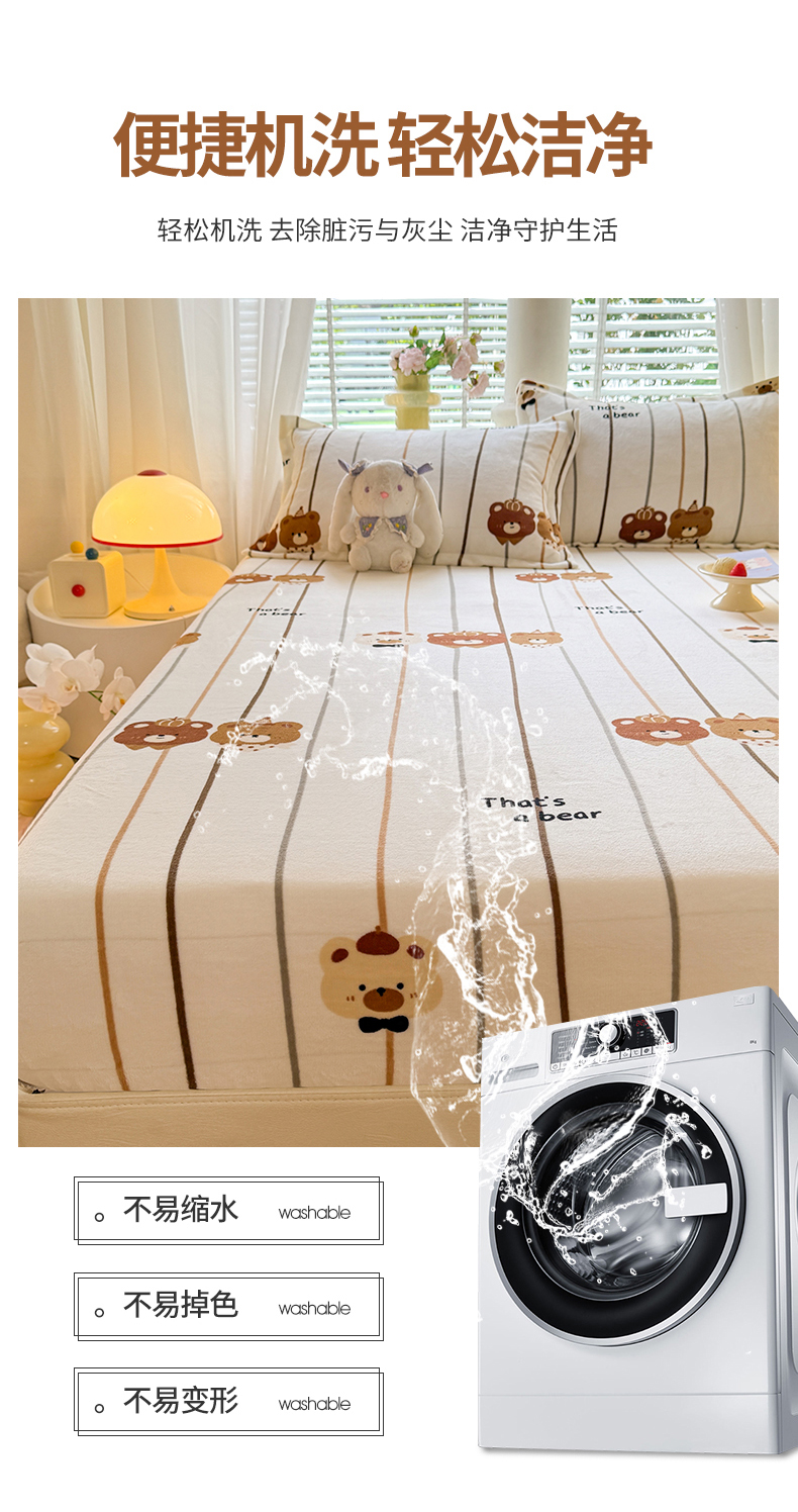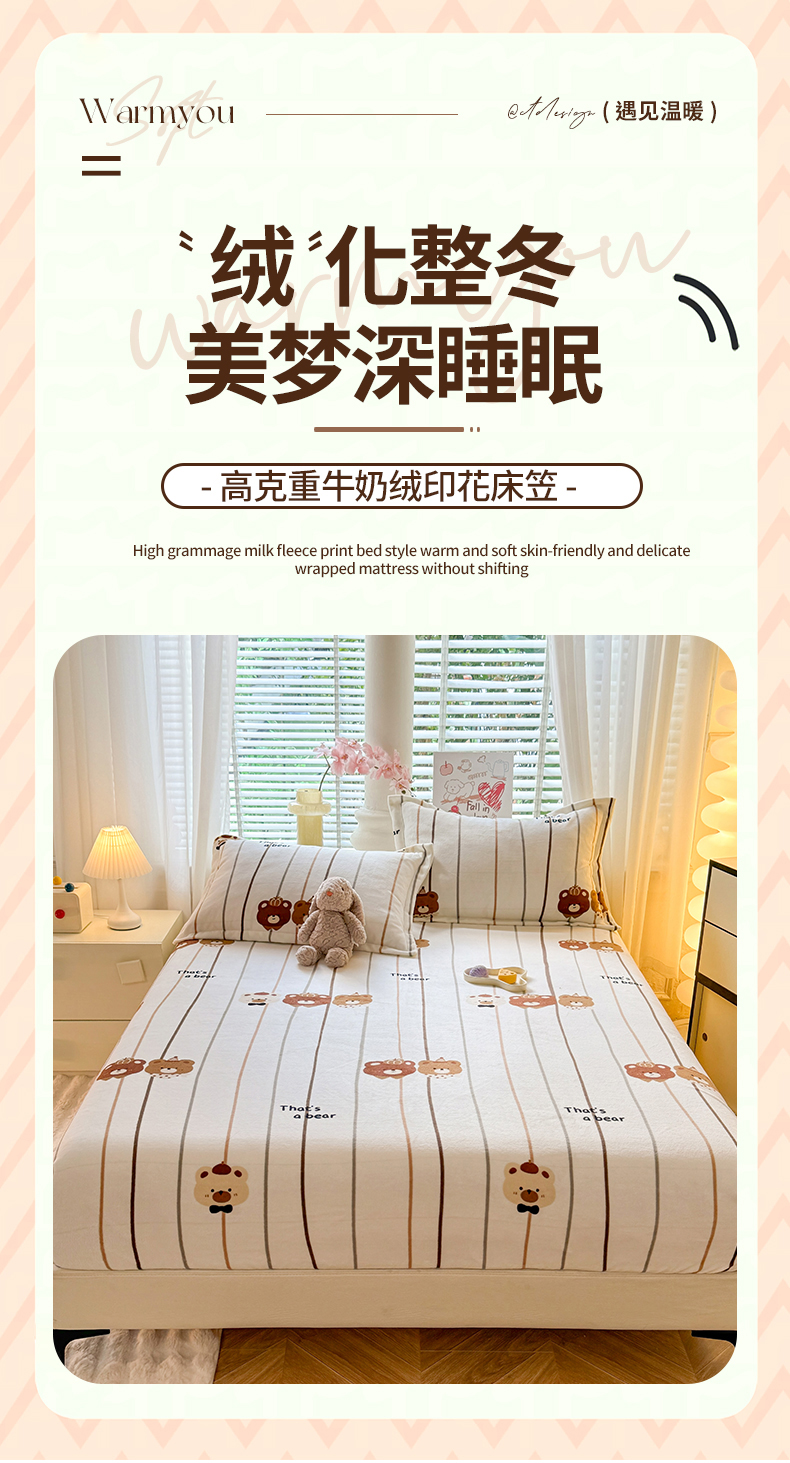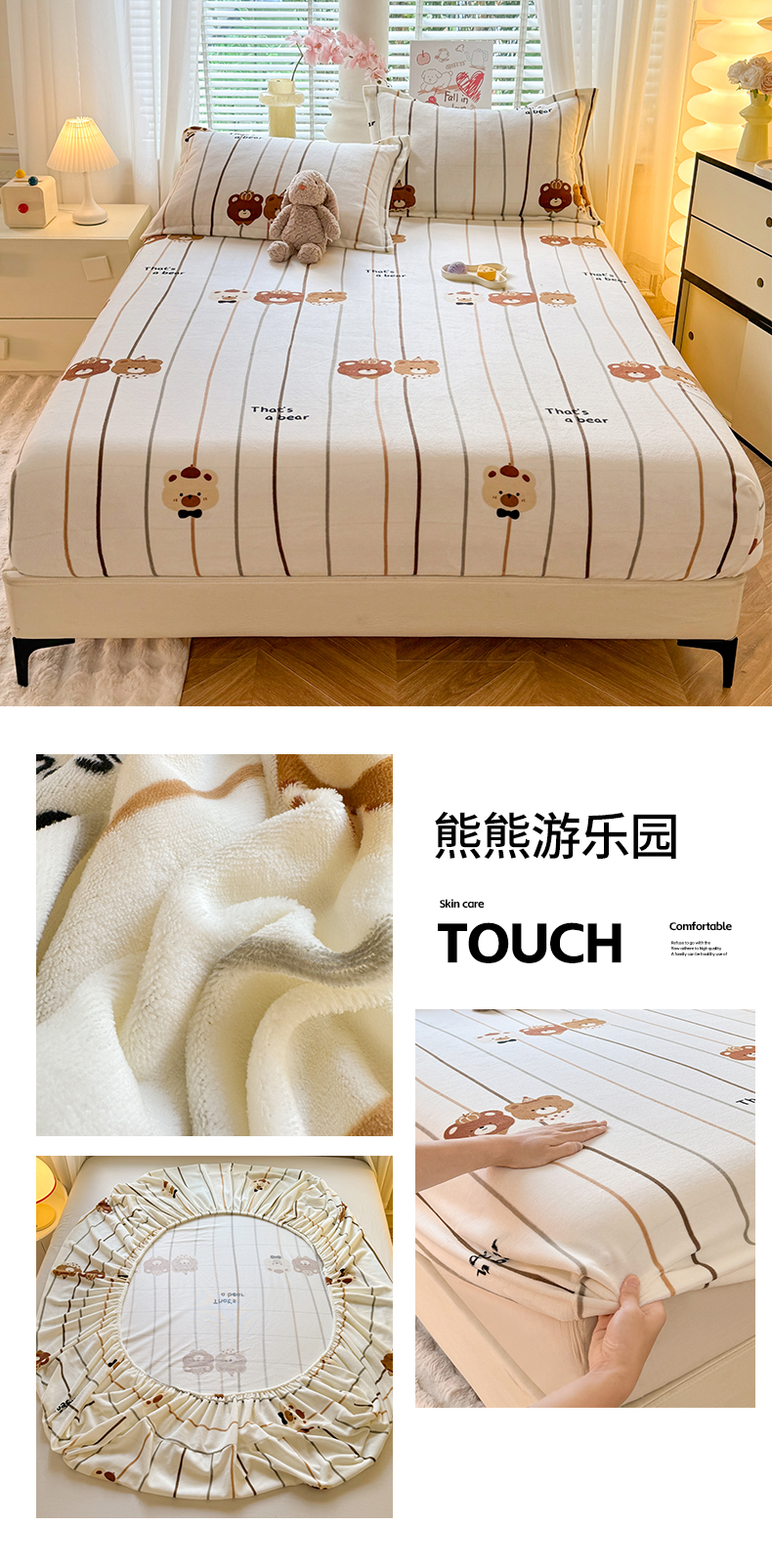 商品名称:妖妖家纺 2024新款200克牛奶绒单床笠 熊熊游乐园