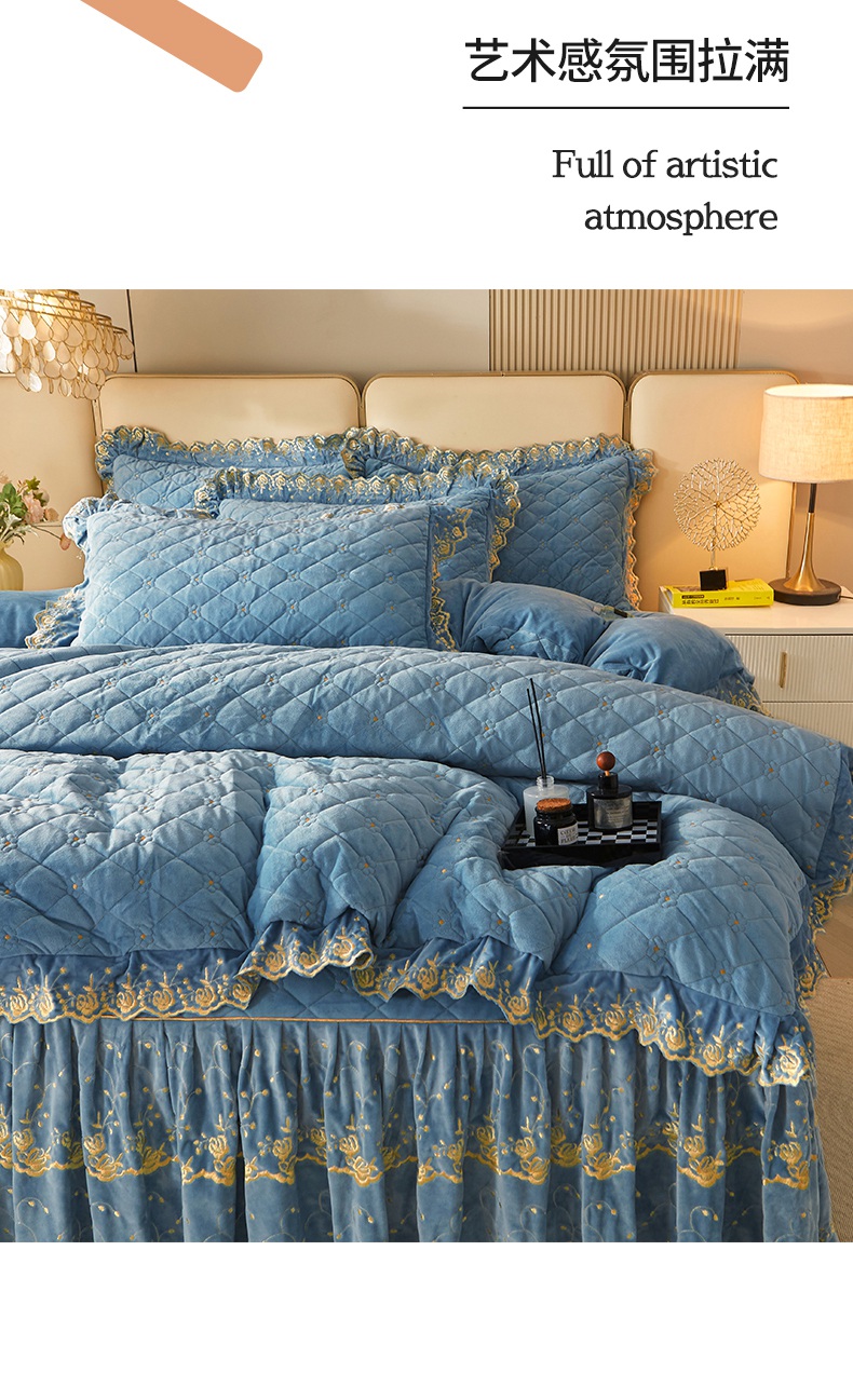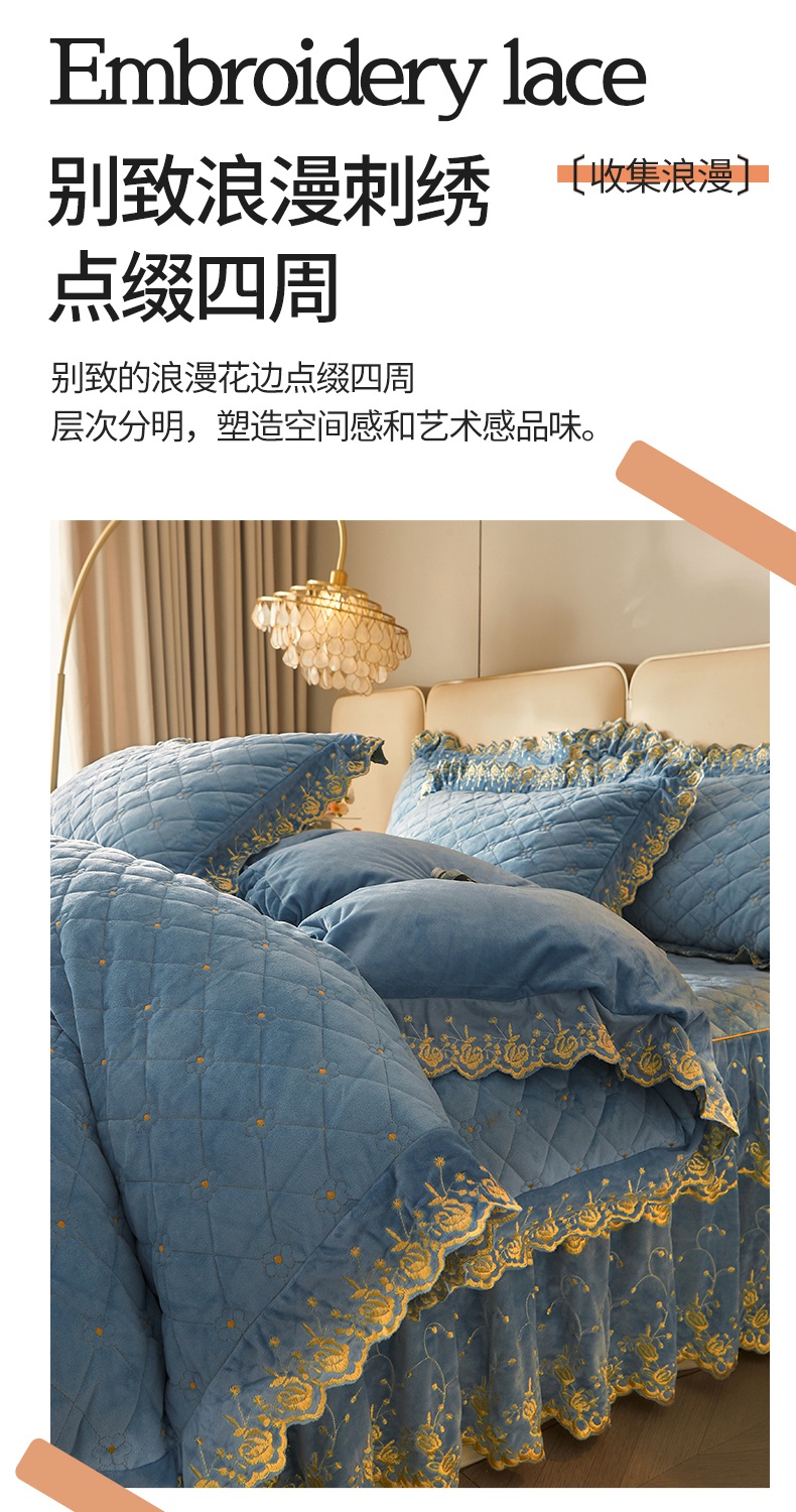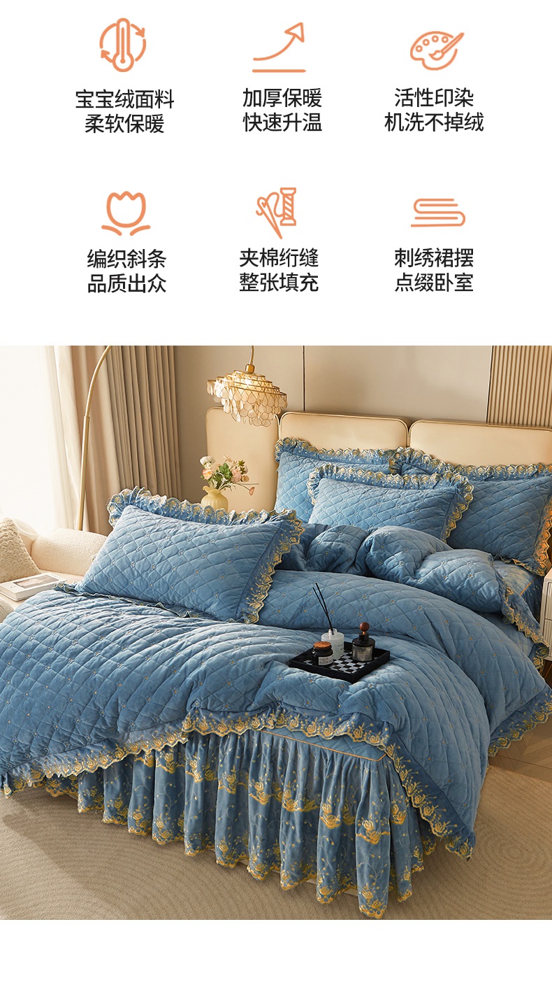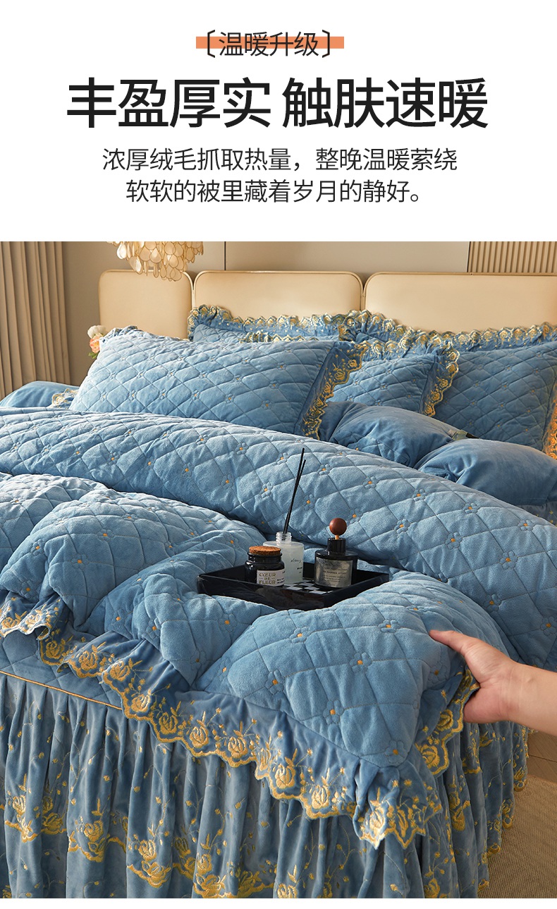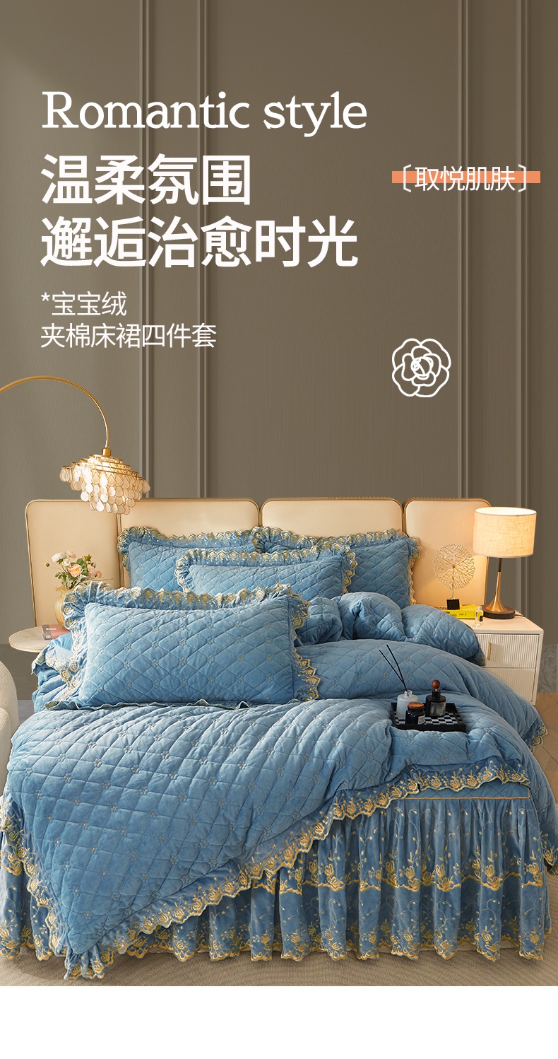 当前位置: 91家纺网 > 商品网购 > 床品套件 > 四件套 > 其它四件套 > 罗艺轩 2024新款加厚宝宝绒夹棉床裙四件套-梦幻星辰 绅士蓝