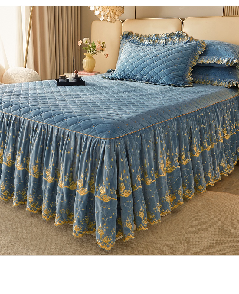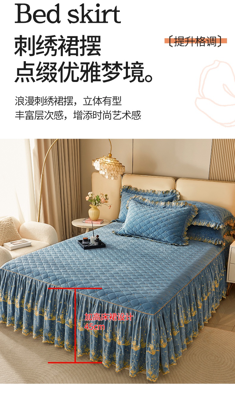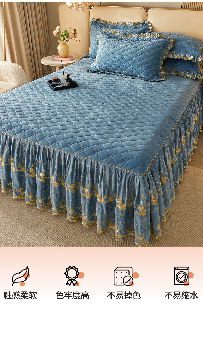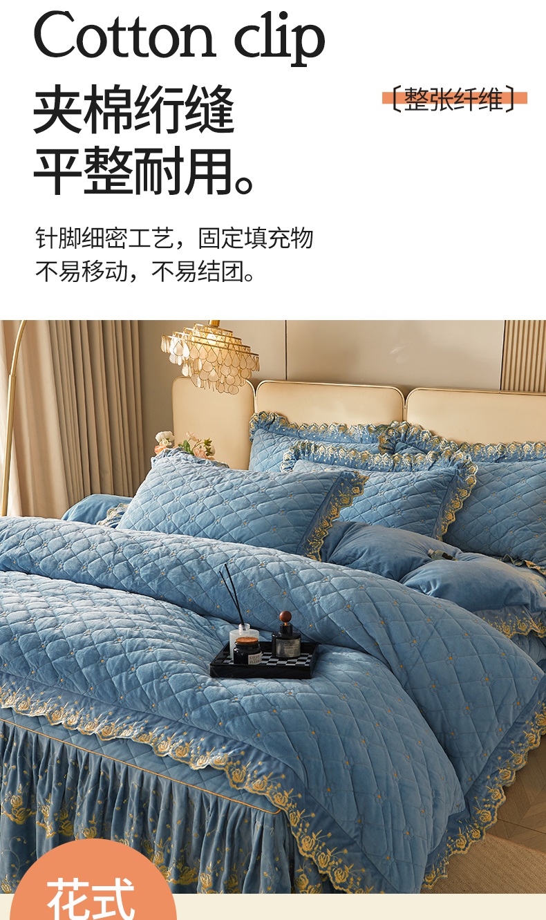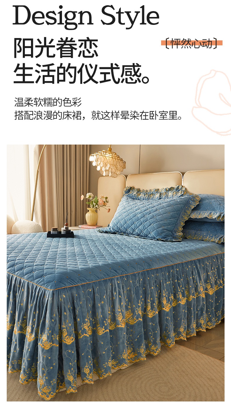 当前位置: 91家纺网 > 商品网购 > 床品套件 > 四件套 > 其它四件套 > 罗艺轩 2024新款加厚宝宝绒夹棉床裙四件套-梦幻星辰 绅士蓝