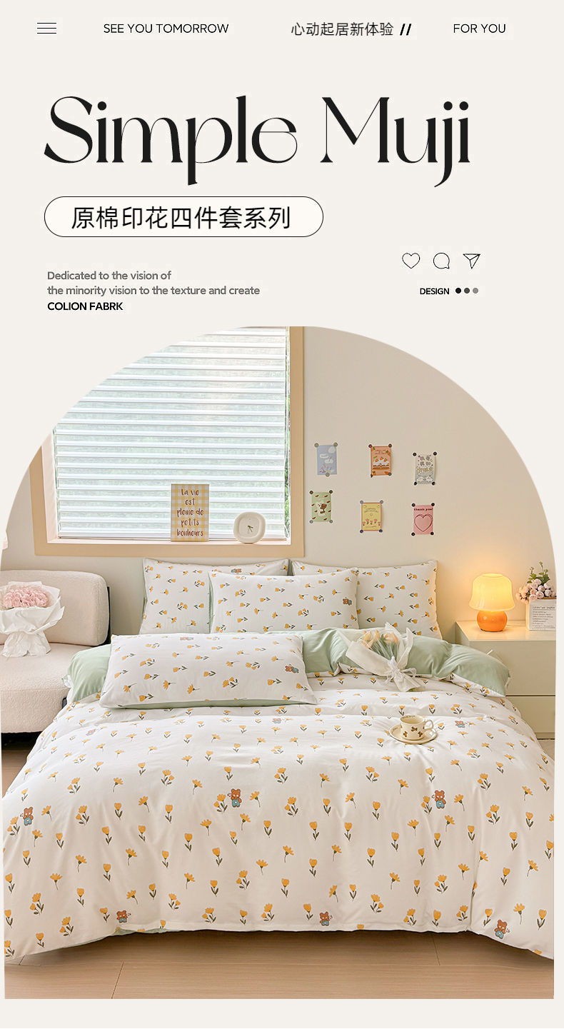 铭浩家纺 2025新款原棉印花四件套 花缘
