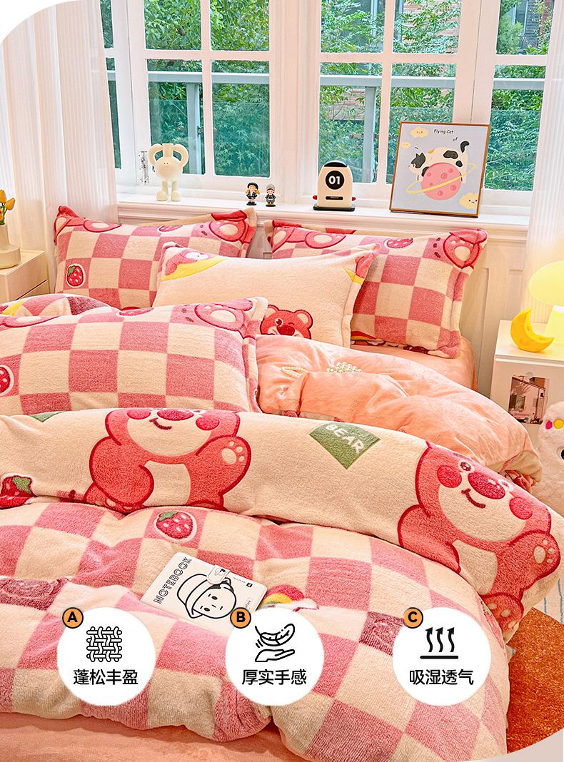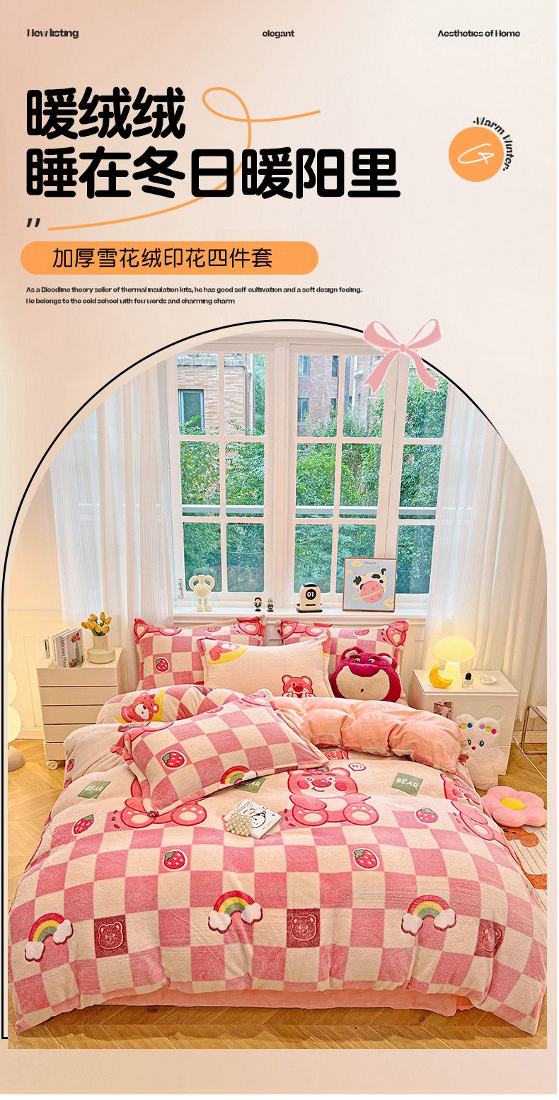 当前位置: 91家纺网 > 商品网购 > 床品套件 > 四件套 > 牛奶绒四件套 > 韩巢家纺 2024新款加厚雪花绒牛奶绒珊瑚绒四件套-新品(提供卖家秀) 欢乐小熊