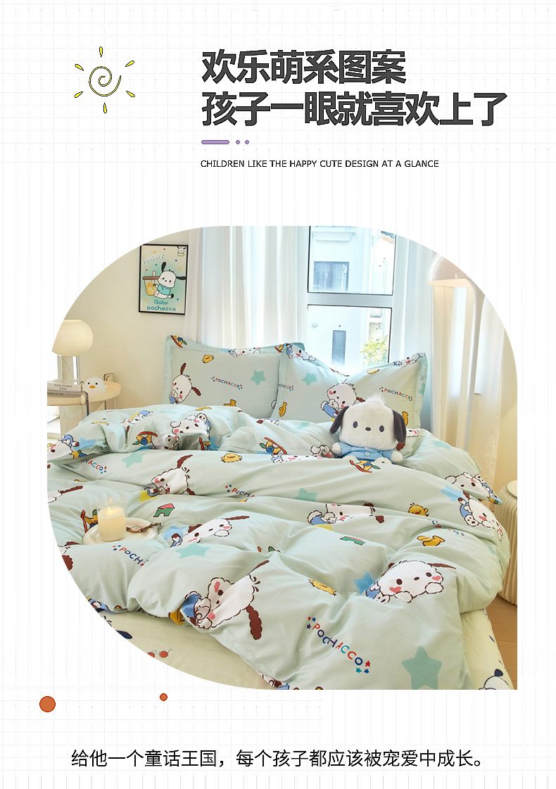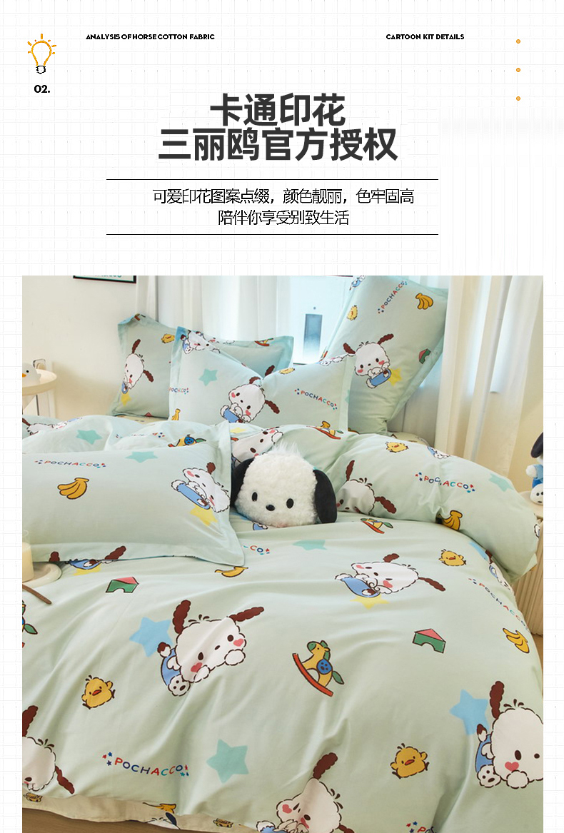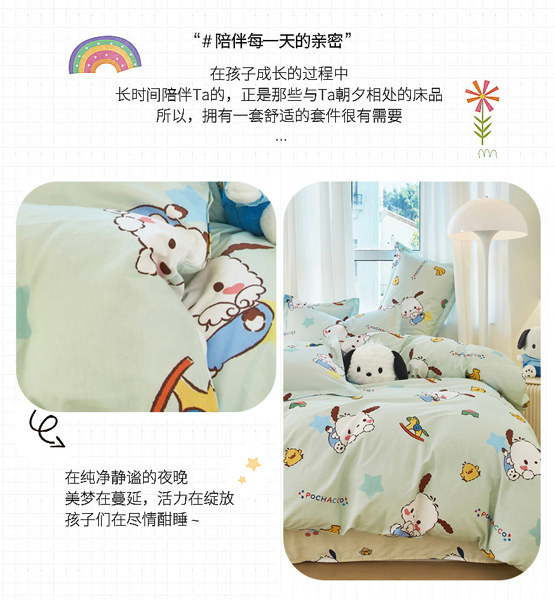 当前位置: 91家纺网 > 商品网购 > 床品套件 > 四件套 > 全棉普通四件套 > 蘭菲家纺 2024新款全棉小版卡通三丽鸥四件套 水果派