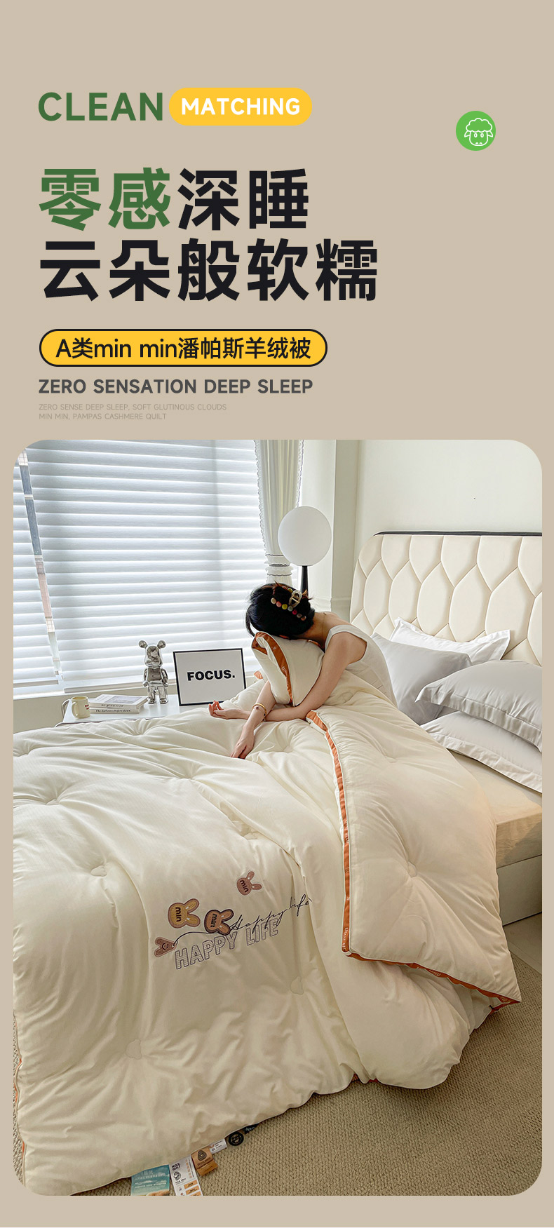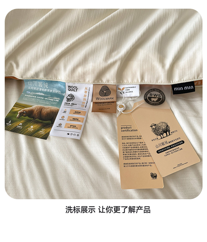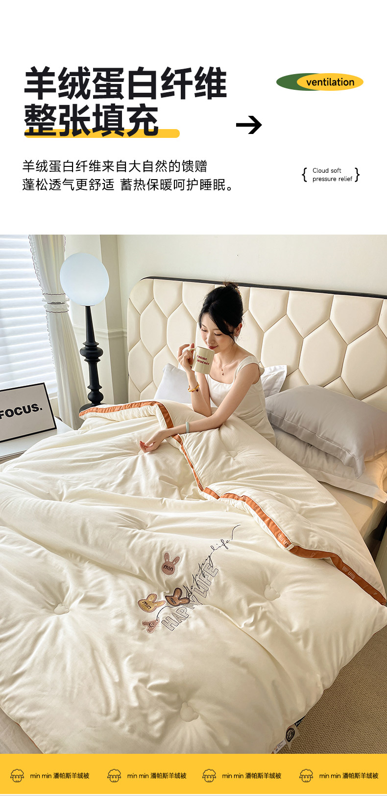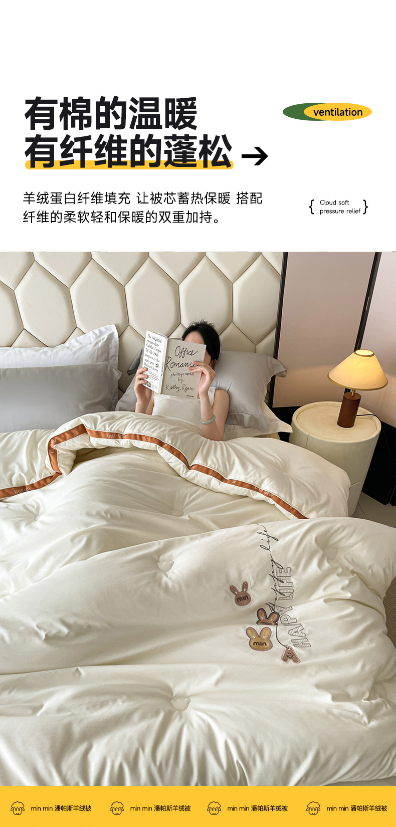• 91家纺网 家纺一手货源 找家纺 被靠被 2024新款minmin潘帕斯羊绒被被子被芯 奶油白