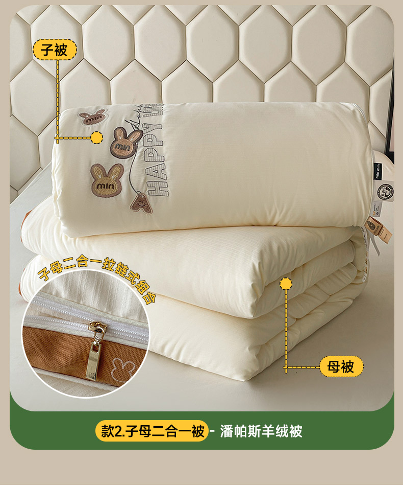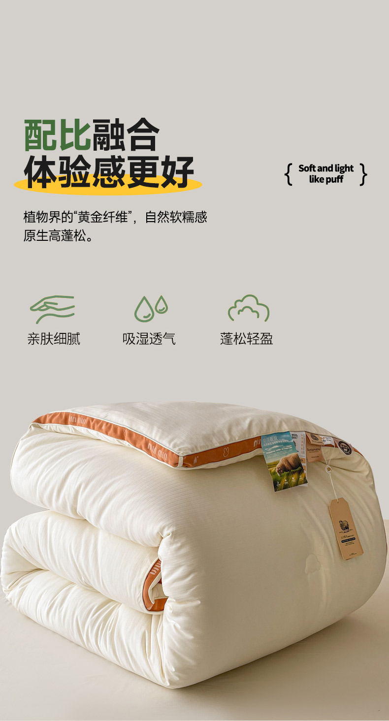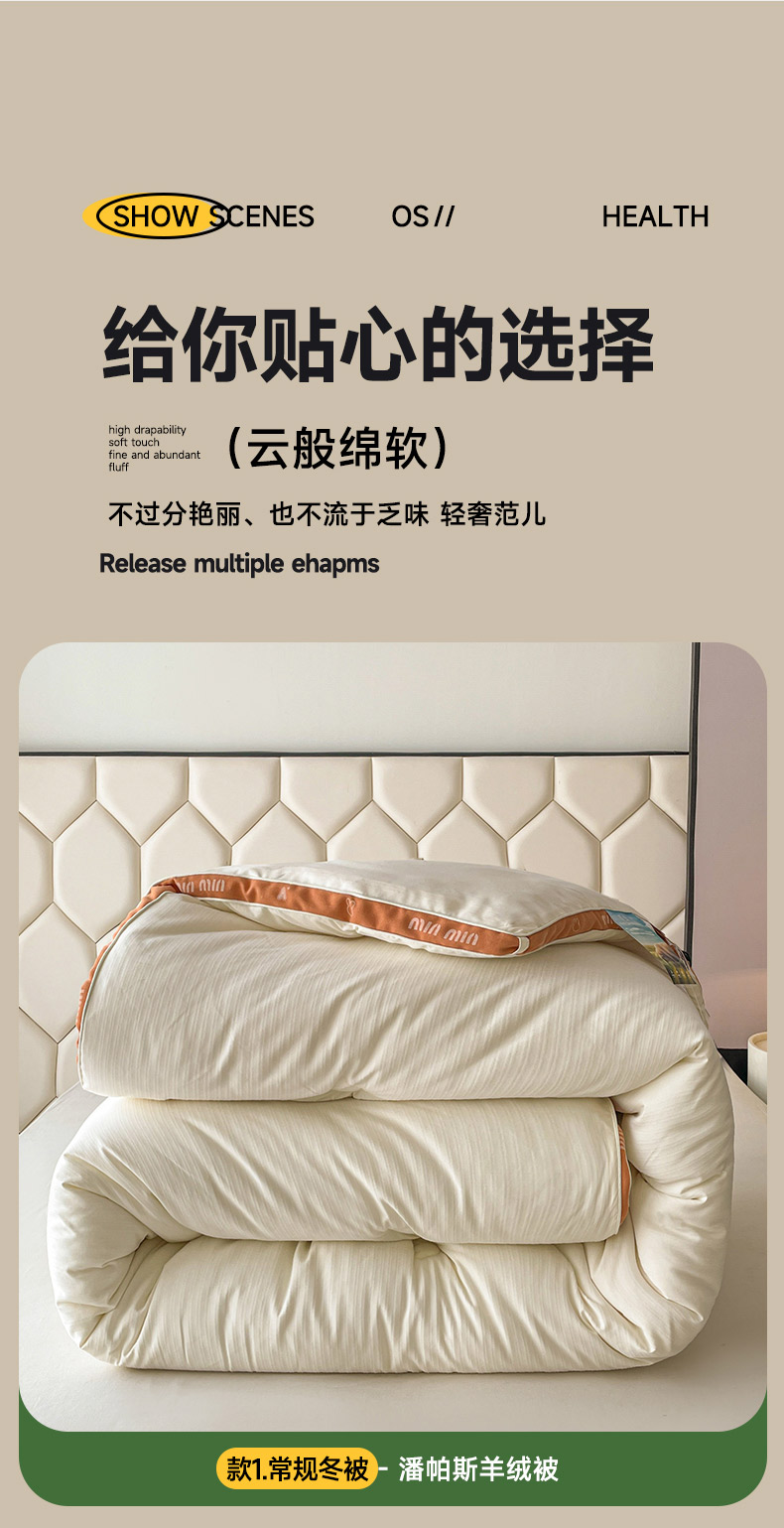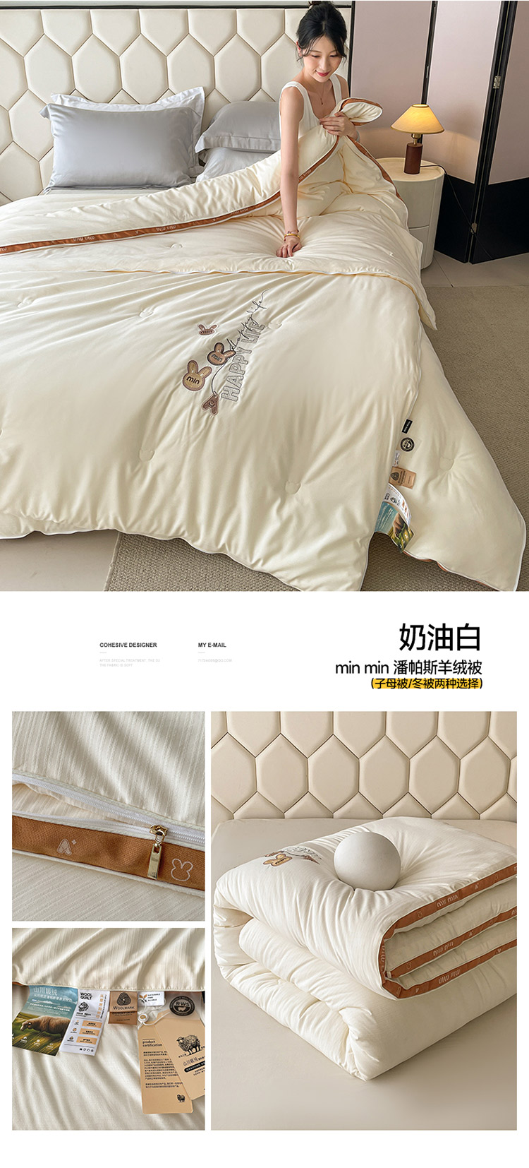 • 91家纺网 家纺一手货源 找家纺 被靠被 2024新款minmin潘帕斯羊绒被被子被芯 奶油白