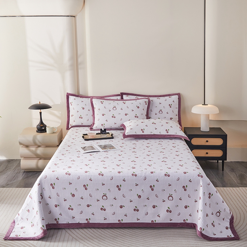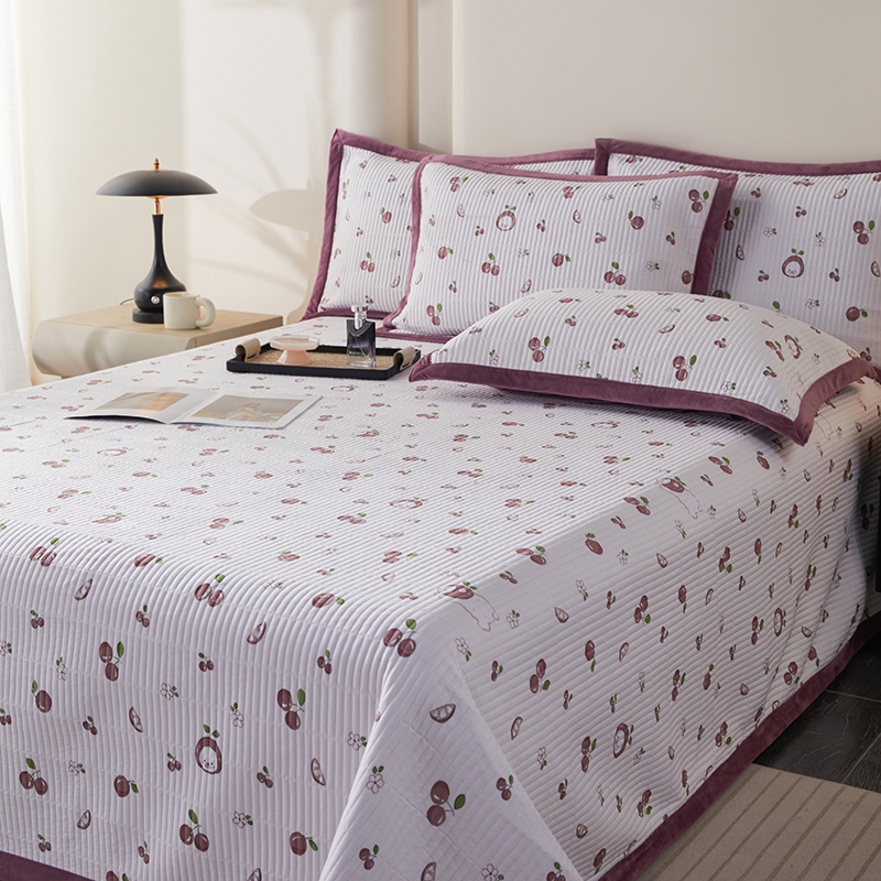 (总)莎果 2024新款天丝绒刺绣款床盖三件套,樱桃-粉,樱桃-灰,樱桃-绿,樱桃-米白,樱桃-紫,樱桃-蓝
