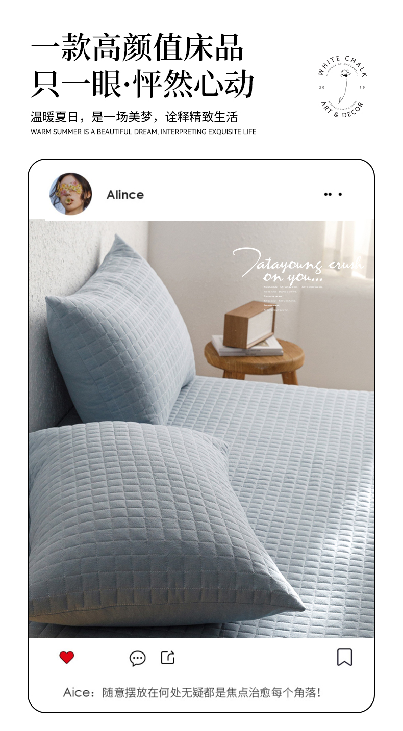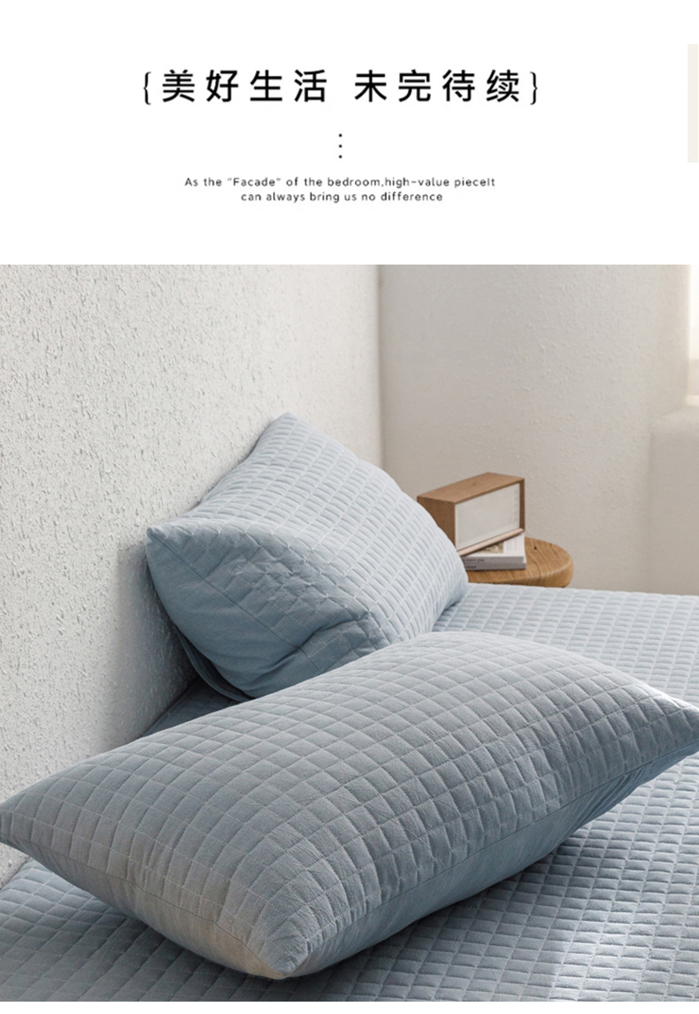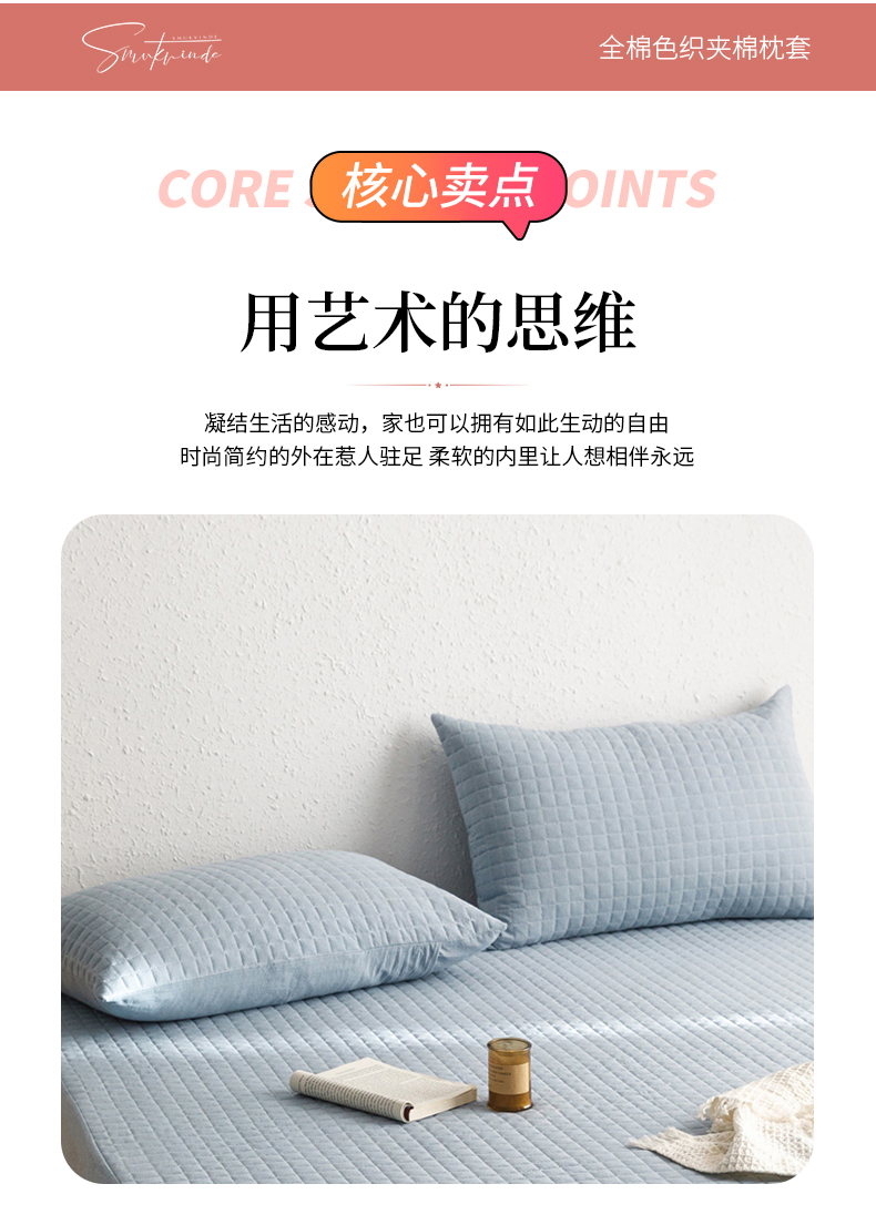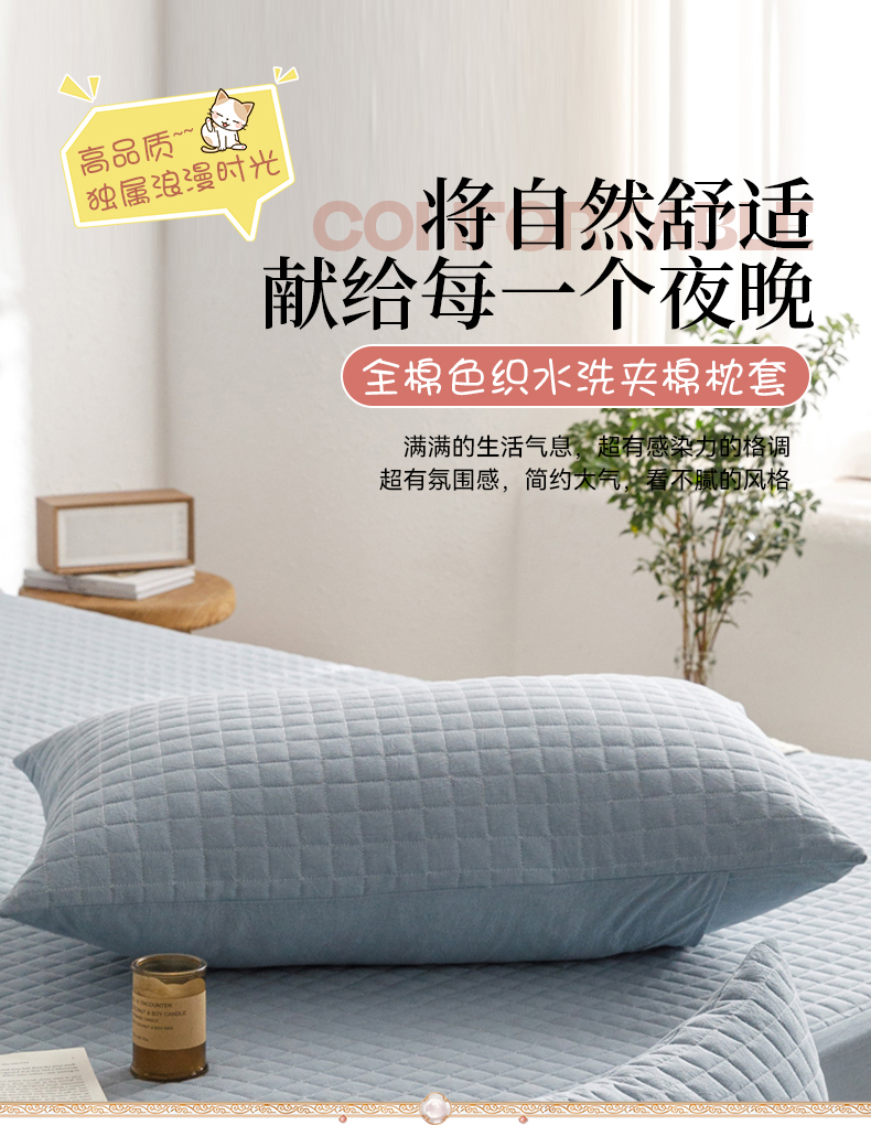 商品名称:忘忧草 2024新款全棉色织水洗棉夹棉枕套-格韵 格韵-浅蓝