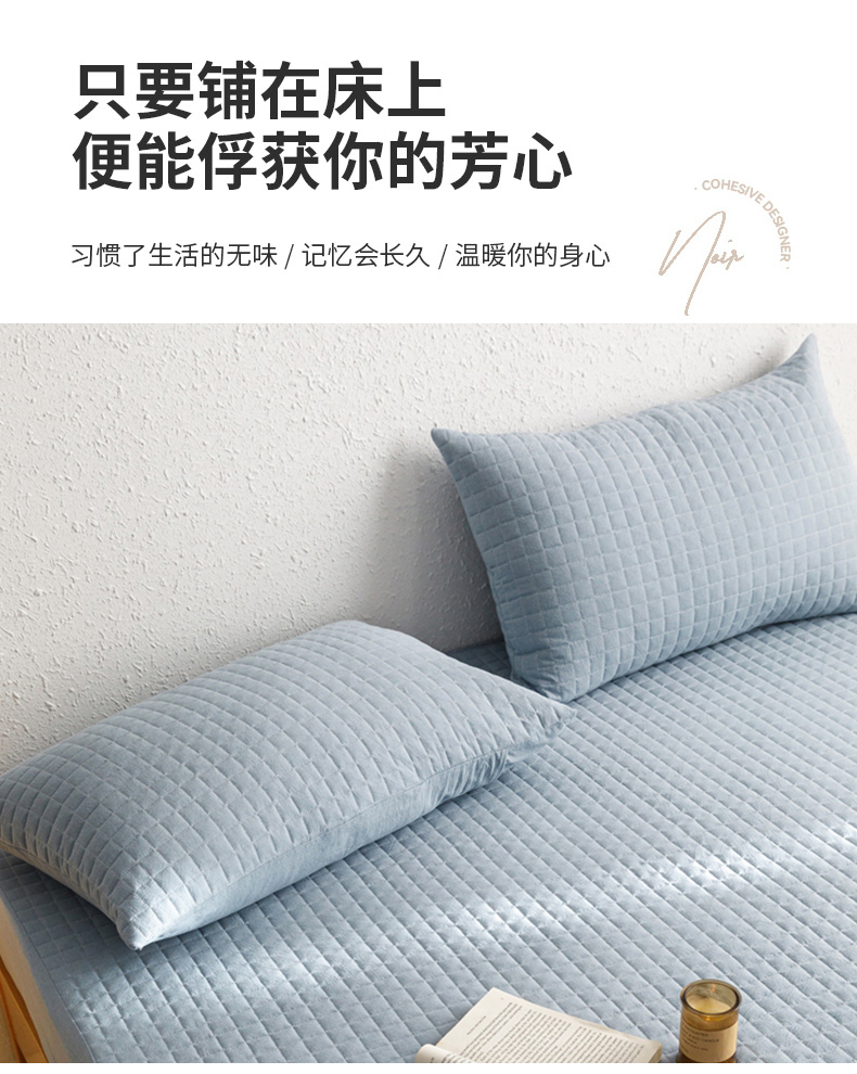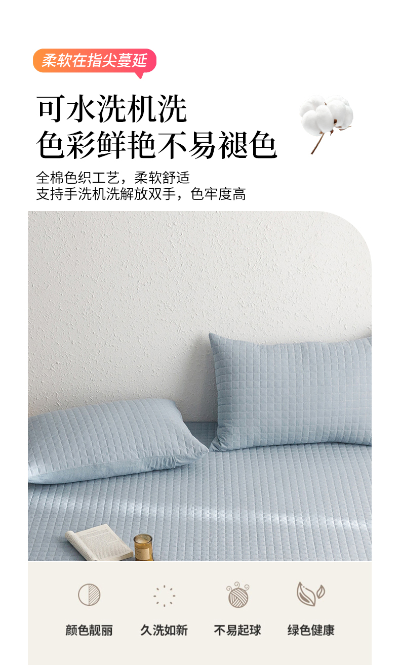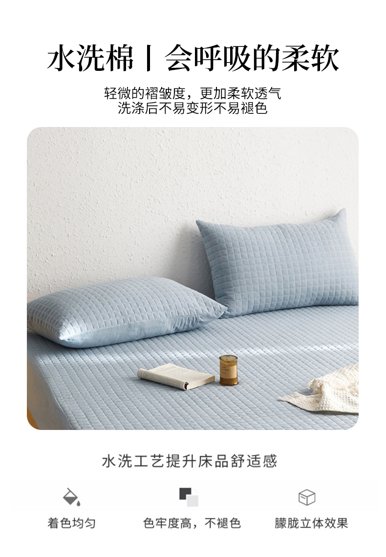 (总)忘忧草 2025新款A类全棉色织水洗夹棉床笠纯棉,格韵-卡其,格韵-浅灰,格韵-浅蓝,格韵-粉玉,格韵-雅白
