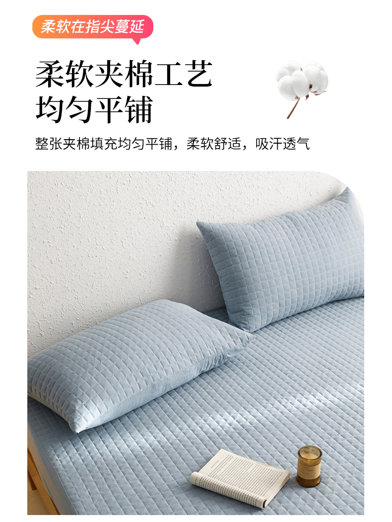 (总)忘忧草 2025新款A类针织棉夹棉防水床笠隔尿垫床罩,淡雅白,豆沙红,翡翠绿,丽人粉,浅米黄,绅士灰