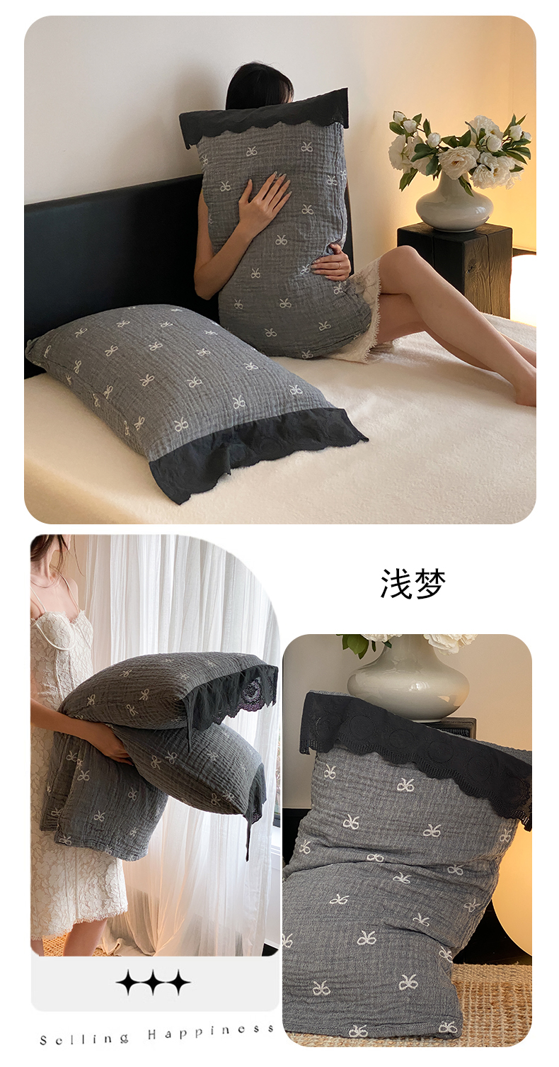 商品名称:麻依 2024新款法式四层纱布枕套花边款 浅梦