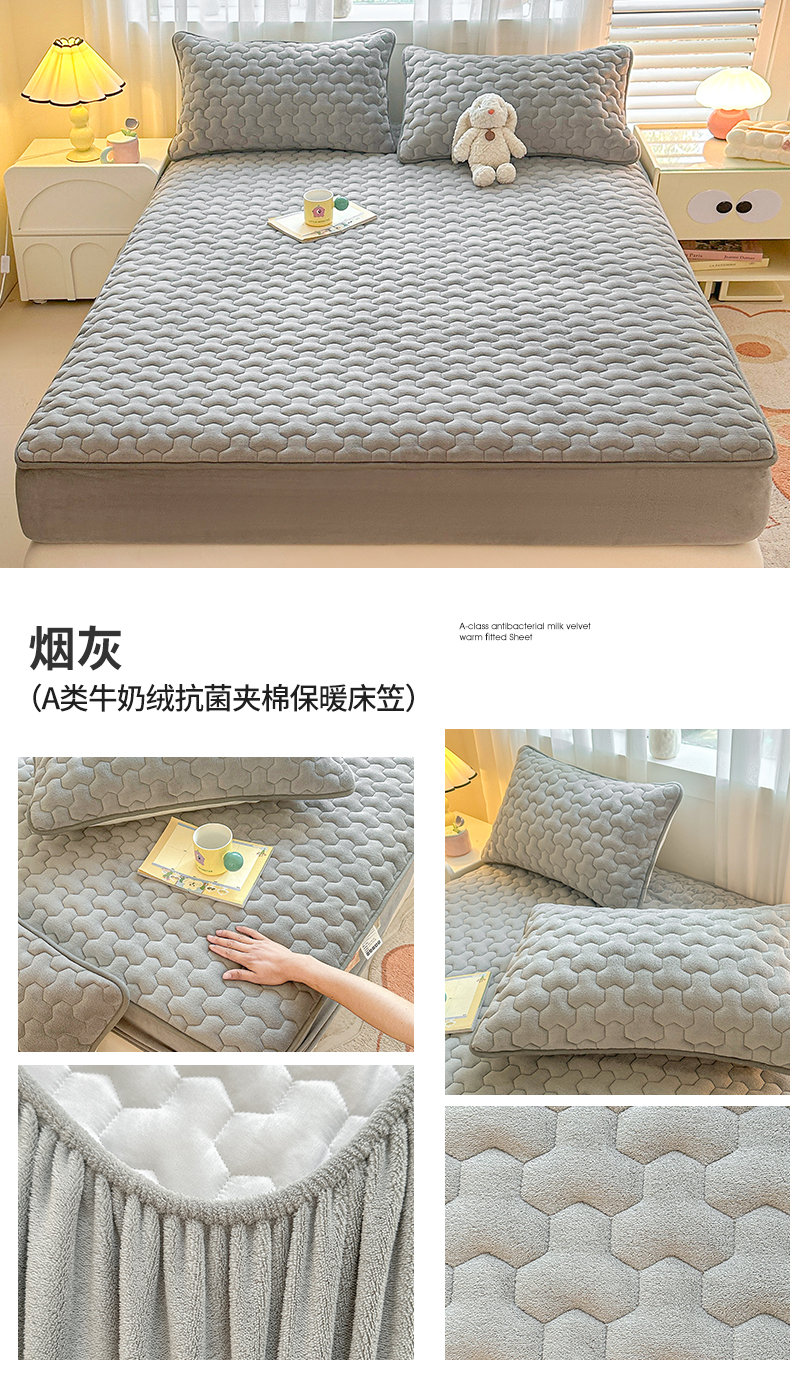 商品名称:曼之夏 2024新款A类牛奶绒抗菌夹棉保暖床笠 烟灰