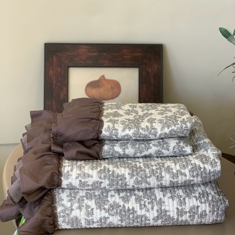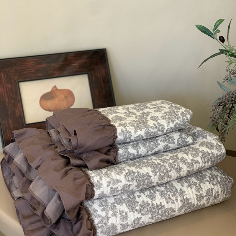 (总)汇庭 2025秋冬新款麻三月床盖三件套系列,黑点点,花絮粉,锦绣,梨花雨,青舍,三月,苏梨士,夜曲,组合