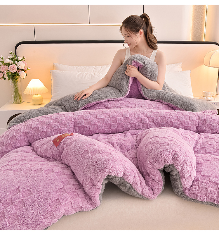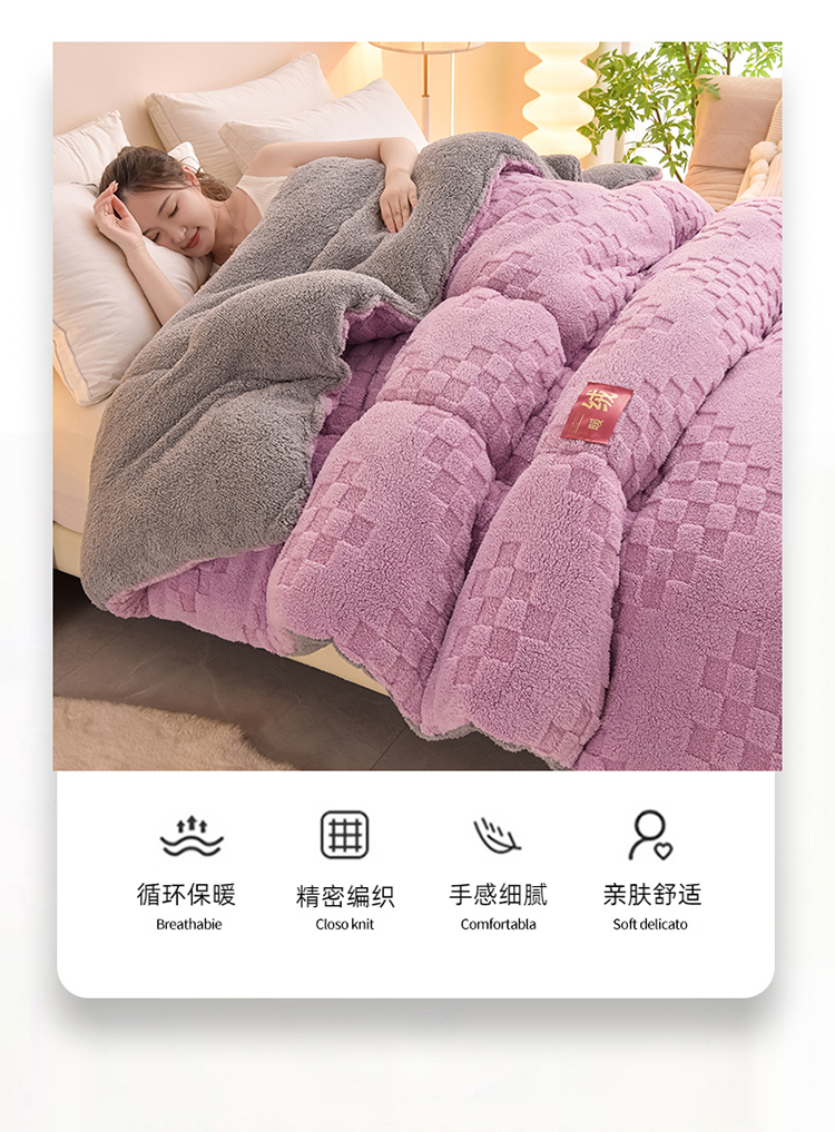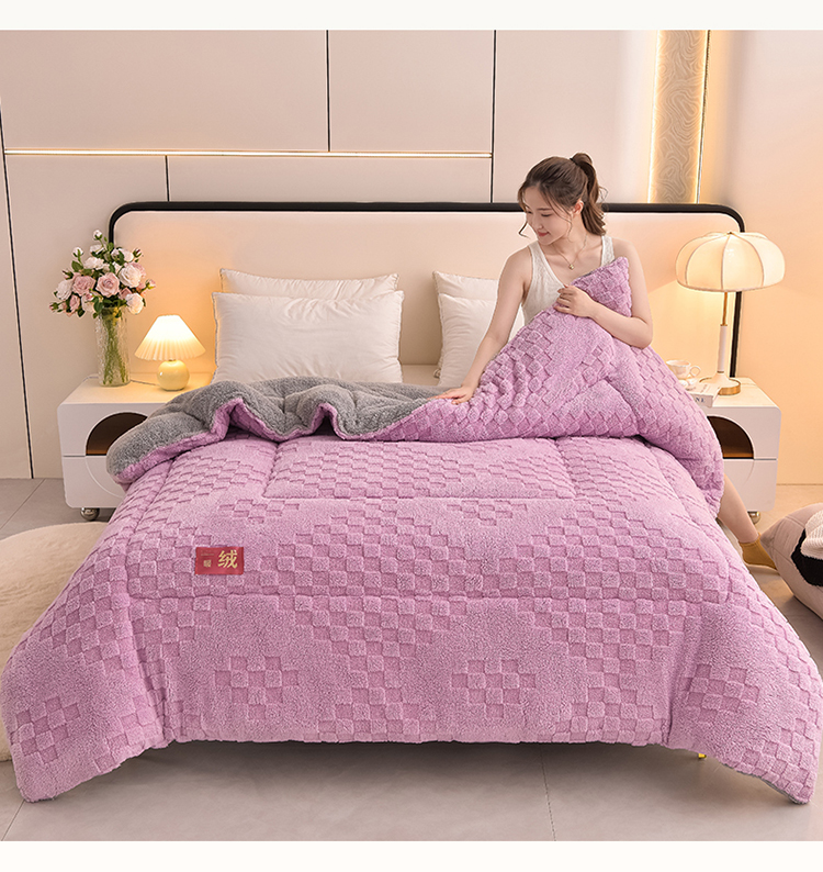 • 91家纺网 家纺一手货源 找家纺 (买家秀 爆款花色不断货)A类母婴级羊羔绒被子被芯牛奶绒被芯春秋被秋冬被塔芙绒被子被芯雪花绒被子 塔芙绒-暖绒紫