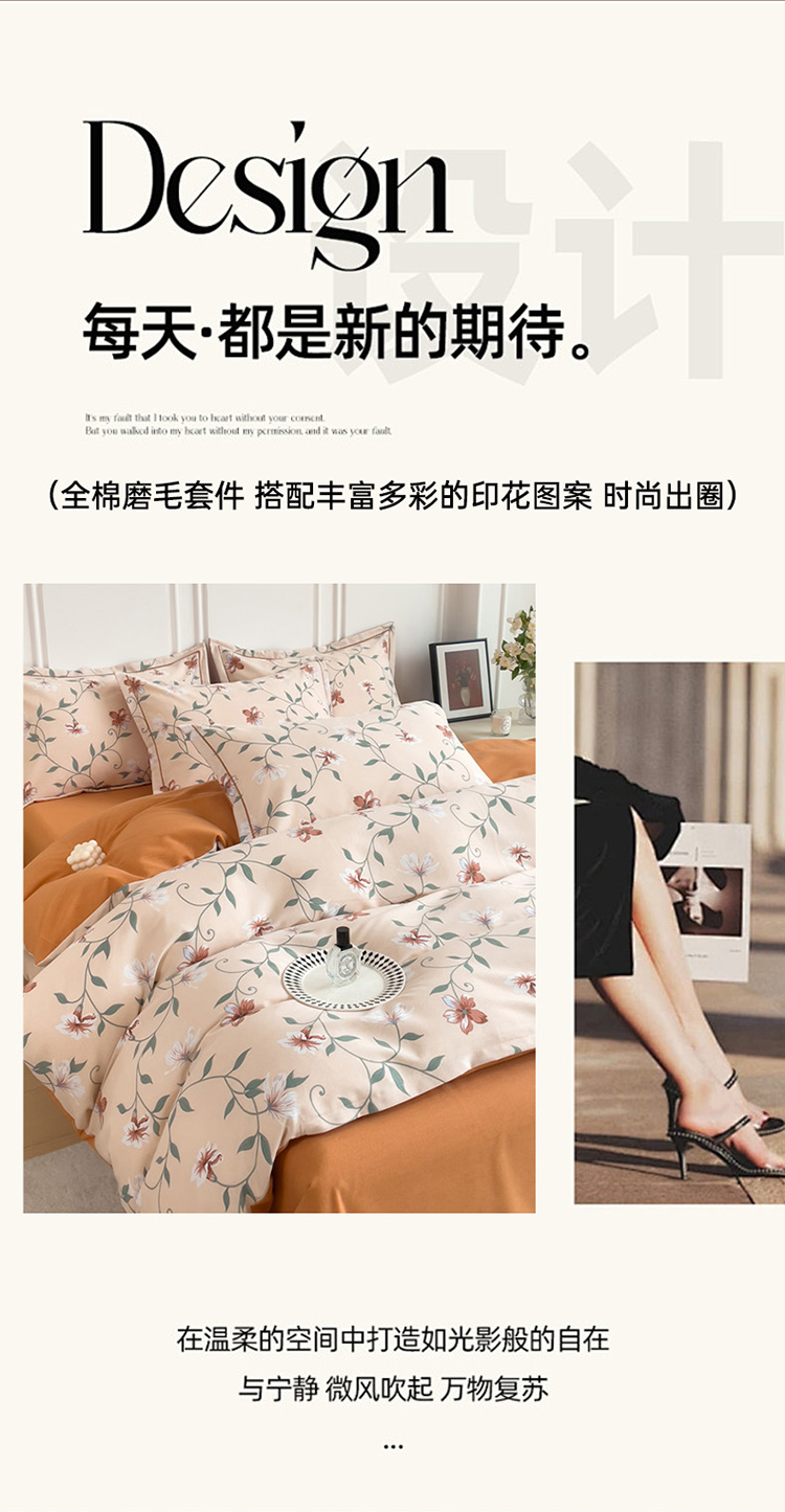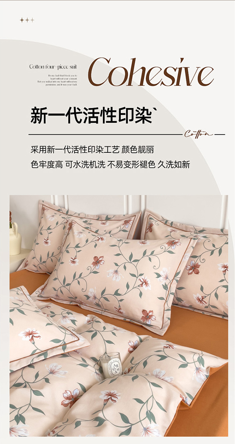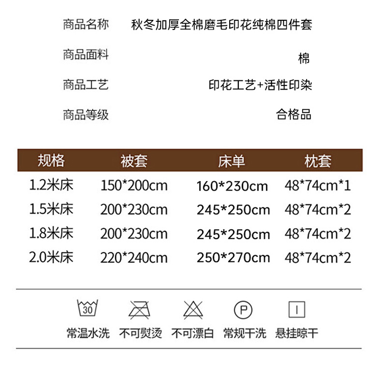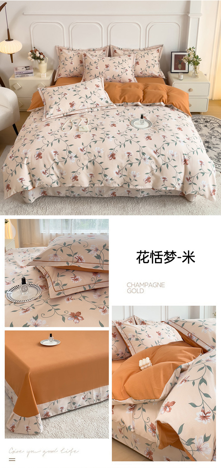 商品名称:(优质买家秀 热卖不断货)A类母婴级纯棉全棉磨毛全棉纯棉全棉磨毛四件套百分百纯棉全棉磨毛四件套 花恬梦-米