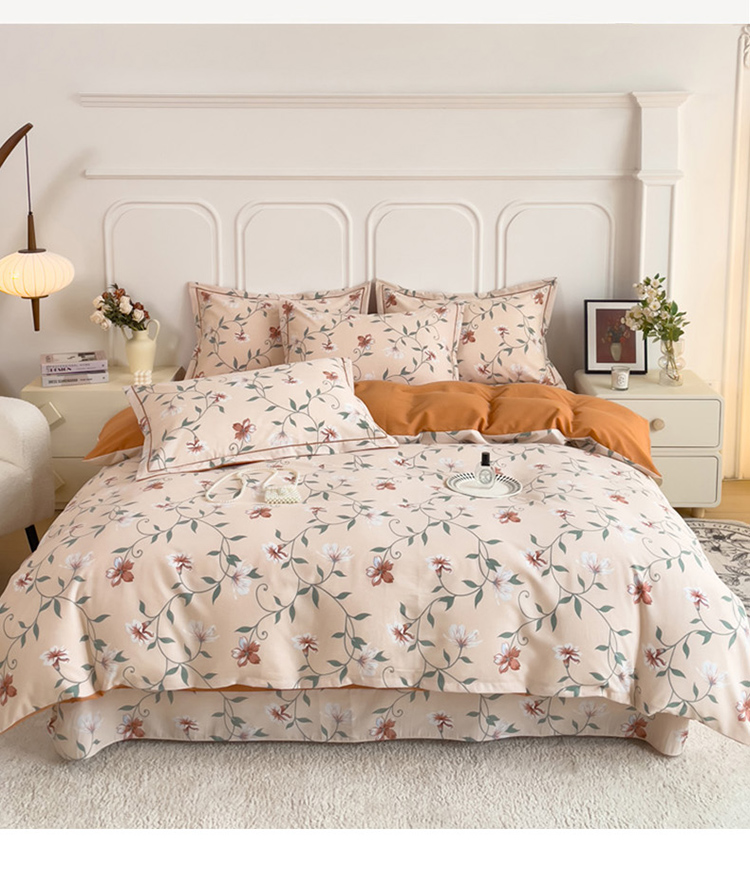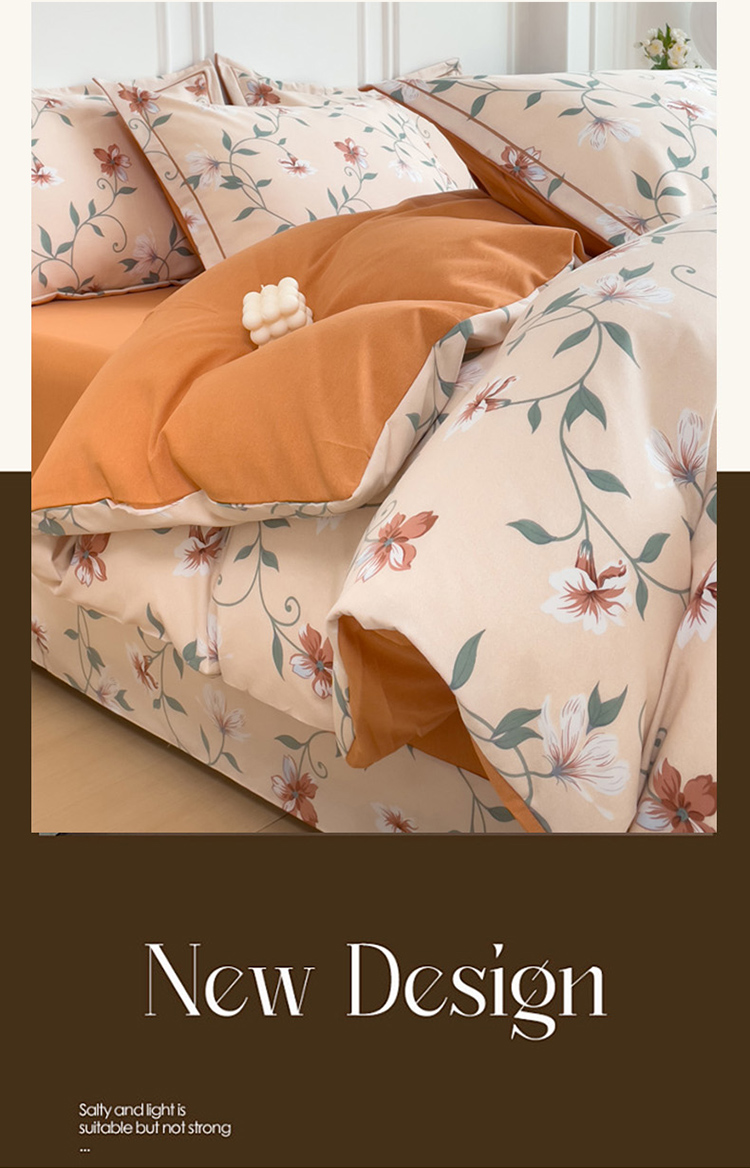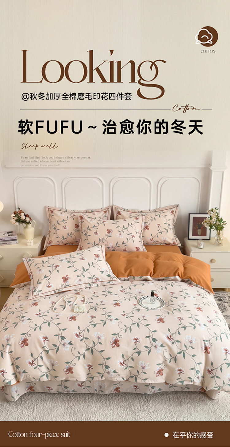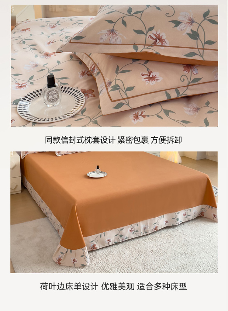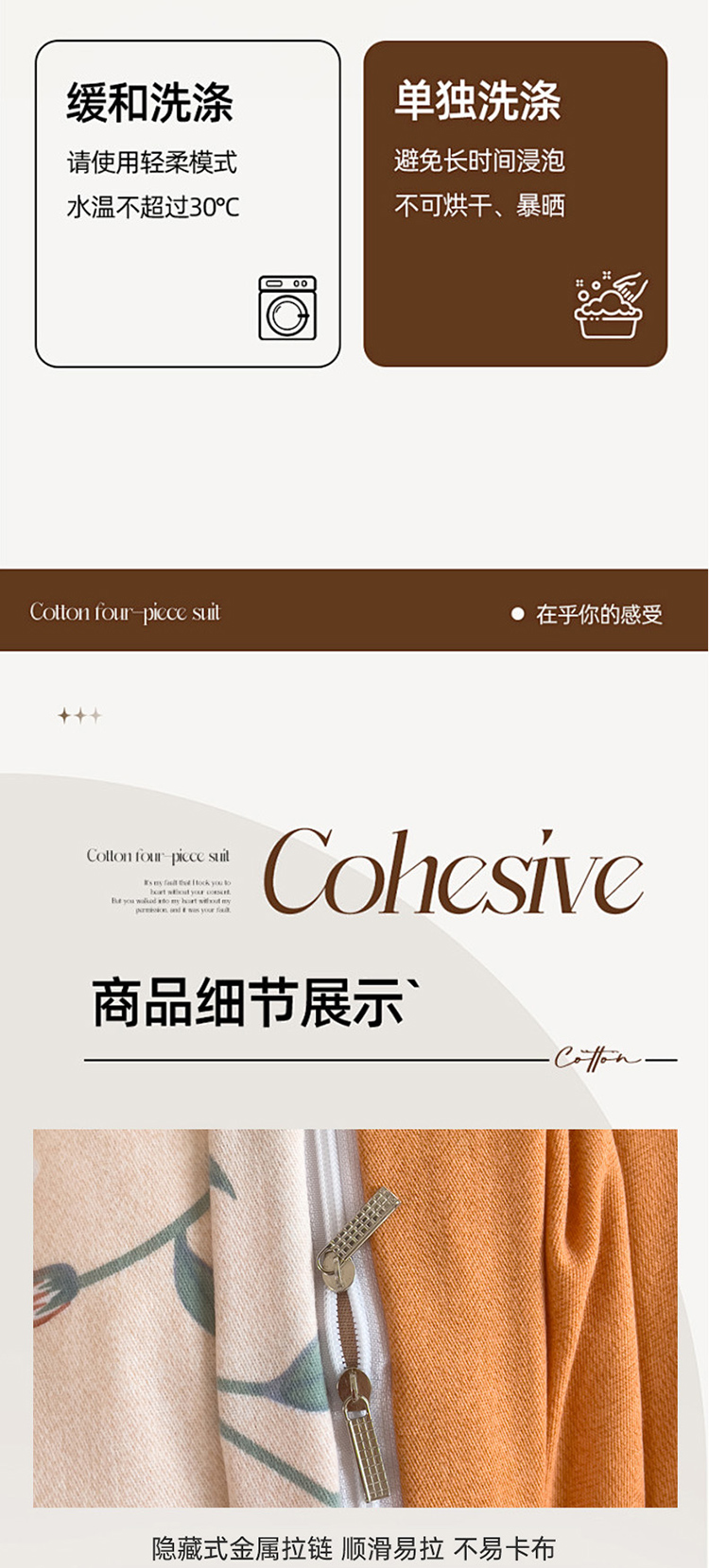 商品名称:(优质买家秀 热卖不断货)A类母婴级纯棉全棉磨毛全棉纯棉全棉磨毛四件套百分百纯棉全棉磨毛四件套 花恬梦-米