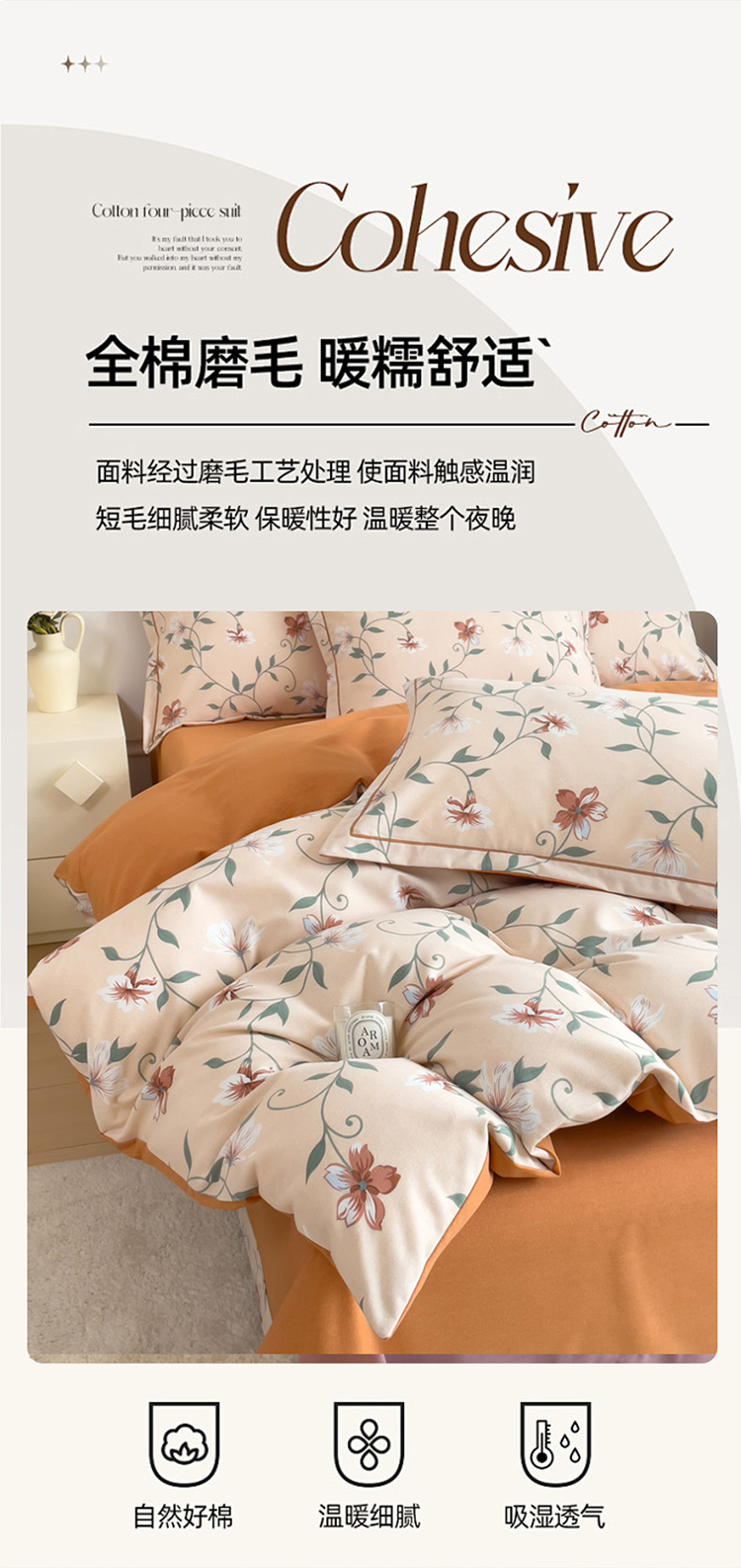 (优质买家秀 热卖不断货)A类母婴级纯棉全棉磨毛全棉纯棉全棉磨毛四件套百分百纯棉全棉磨毛四件套 花恬梦-米
