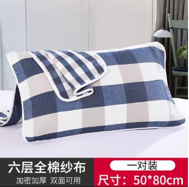 (买家秀爆款花型不断货)A类母婴级全棉纯棉六层纱多功能枕巾多层宽边枕巾无印风流苏纱布枕巾50*80cm/对 展示图