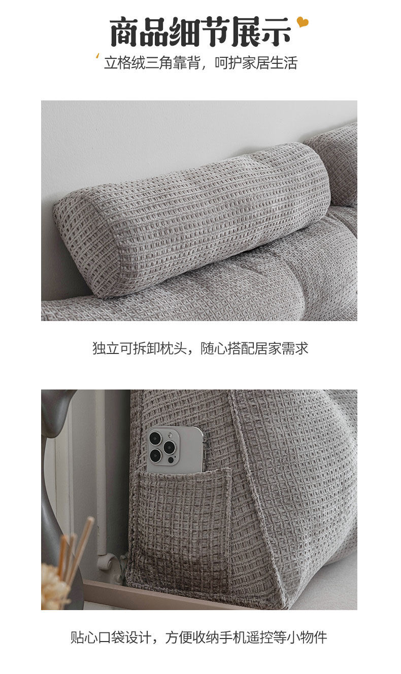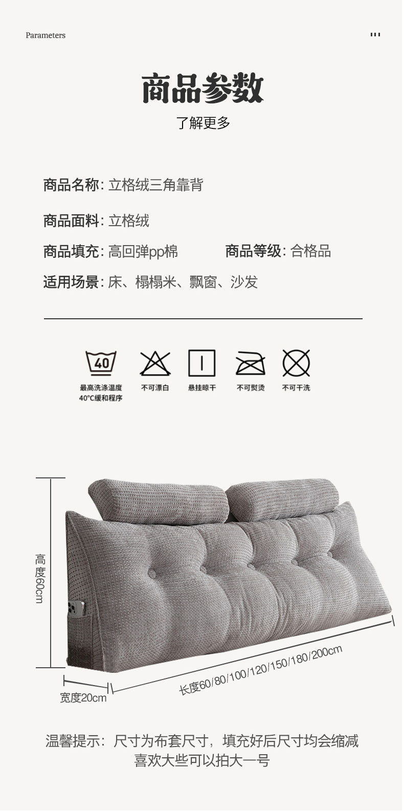 当前位置: 91家纺网 > 商品网购 > 居家日用 > 靠垫/抱枕 > 一兰家纺 2024新款新款加厚立绒格三角靠垫床头大靠背腰靠沙发靠背可拆洗-堡丁系列 堡丁-松驰灰