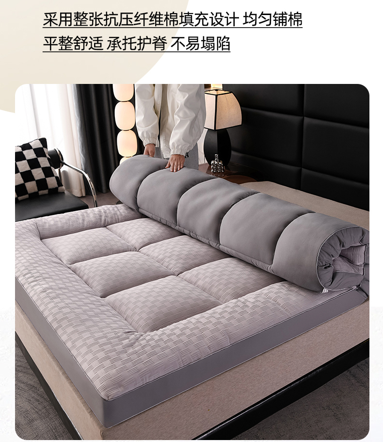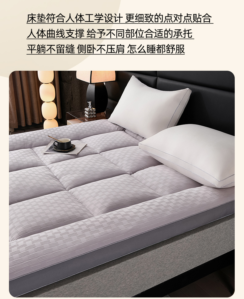 (总)羽涵家纺 2025新款亲肤磨毛床垫,淡雅灰,珍珠白