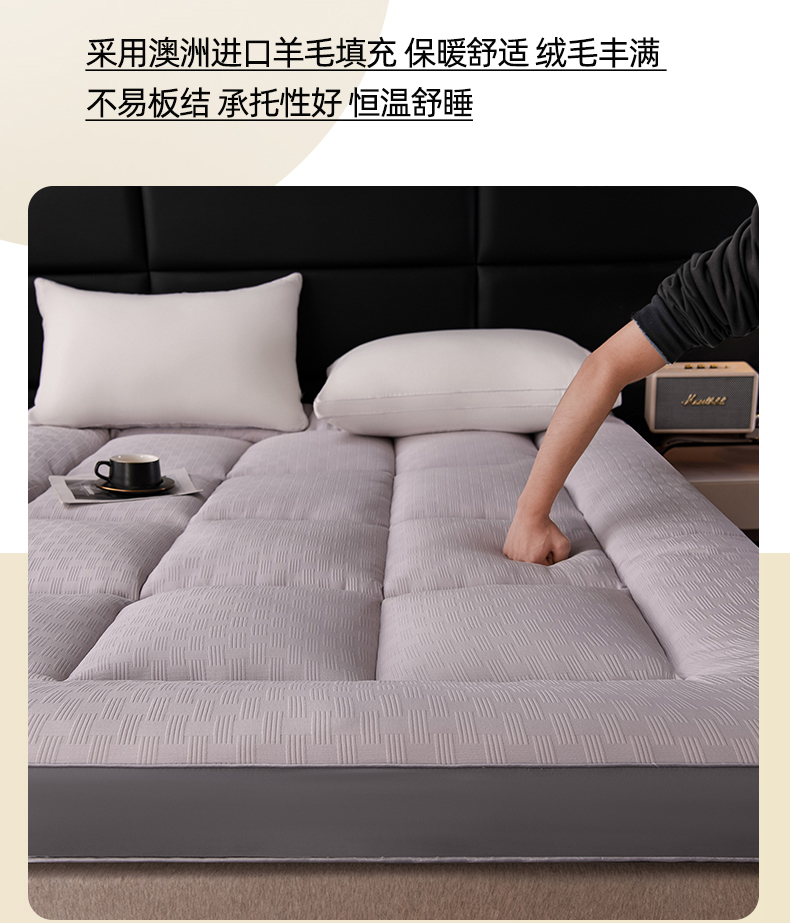 (总)2024新款亲肤舒适石墨烯羊毛床褥,澳洲羊毛白,澳洲羊毛灰