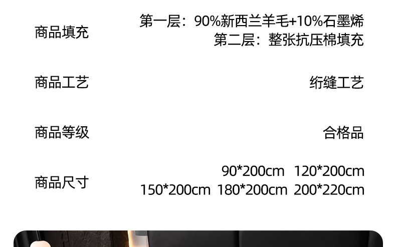 商品名称:2024新款亲肤舒适石墨烯羊毛床褥 澳洲羊毛灰