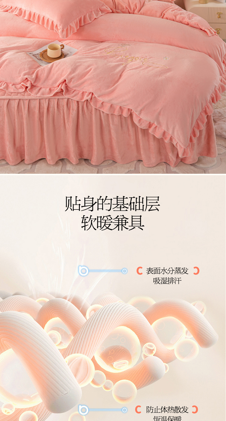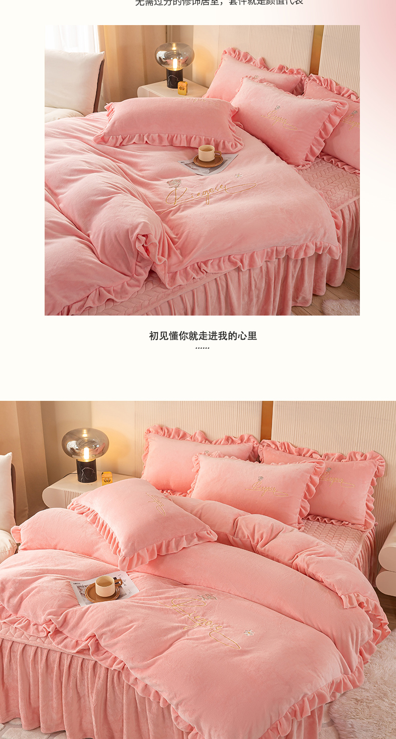 商品名称:(总)慧菲 2025新款刺绣夹棉牛奶绒床裙四件套-玫瑰花语