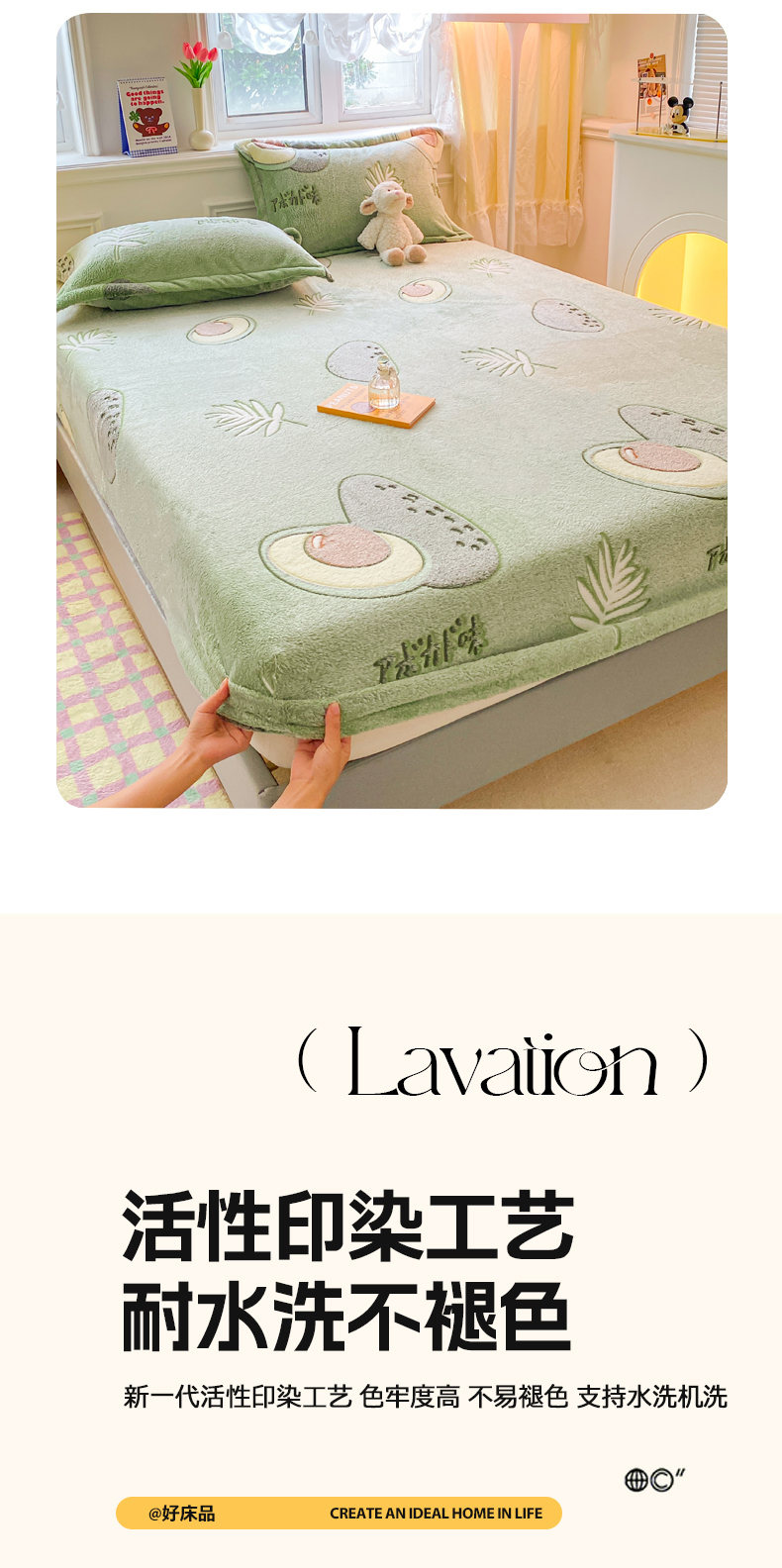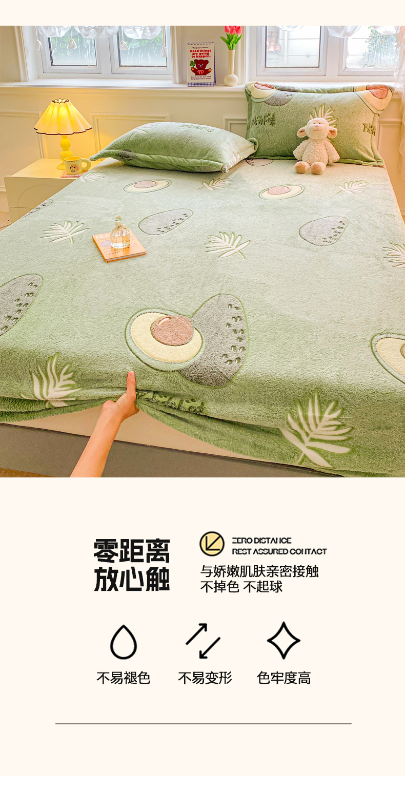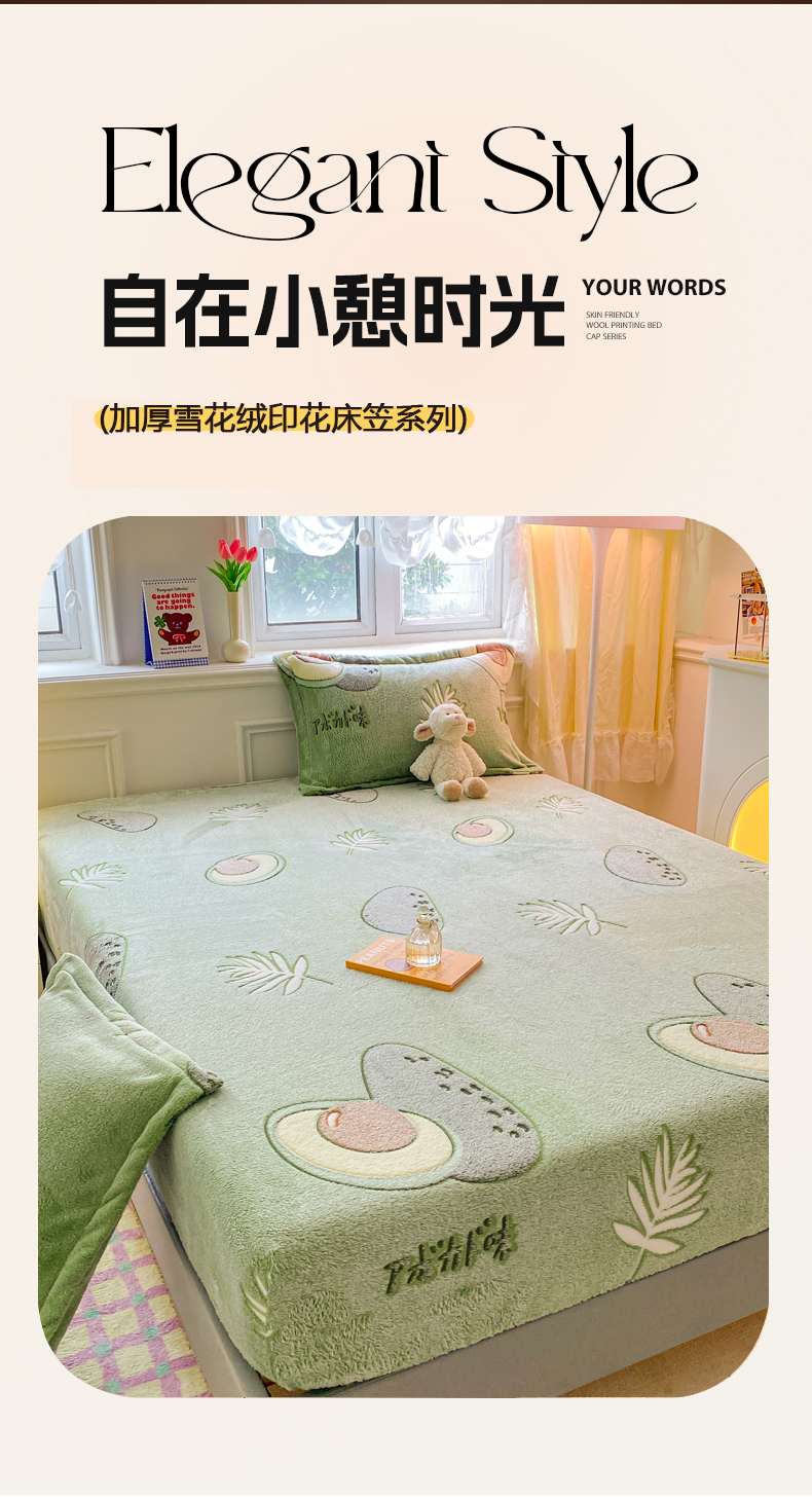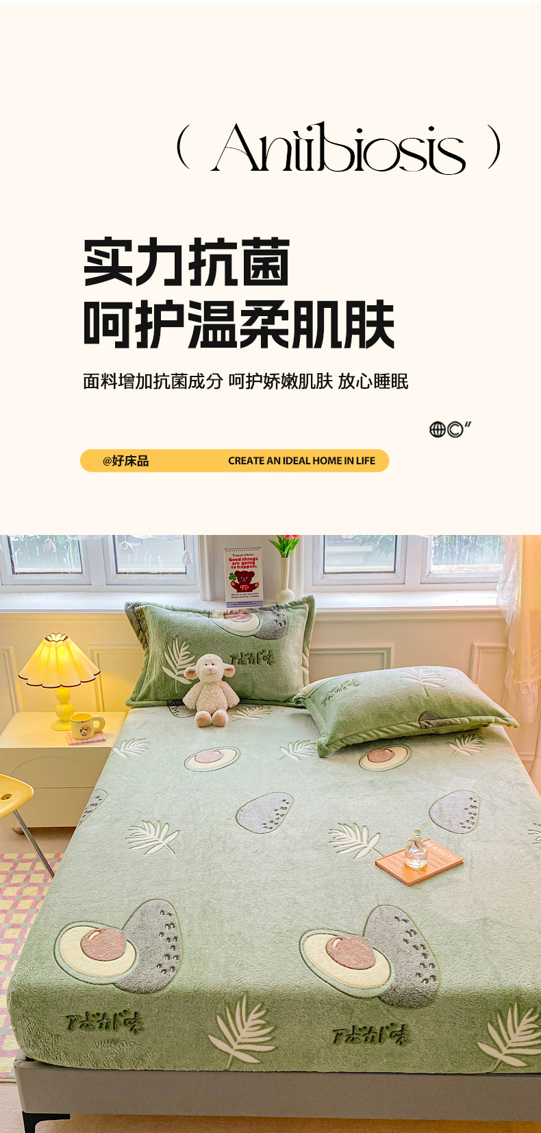 (买家秀 热卖款不断货)A类母婴级牛奶绒床笠珊瑚绒床笠雪花绒床笠罩雪花绒床笠三件套儿童床笠卡通床笠 牛油果