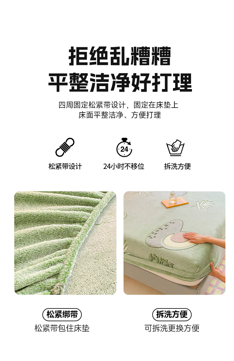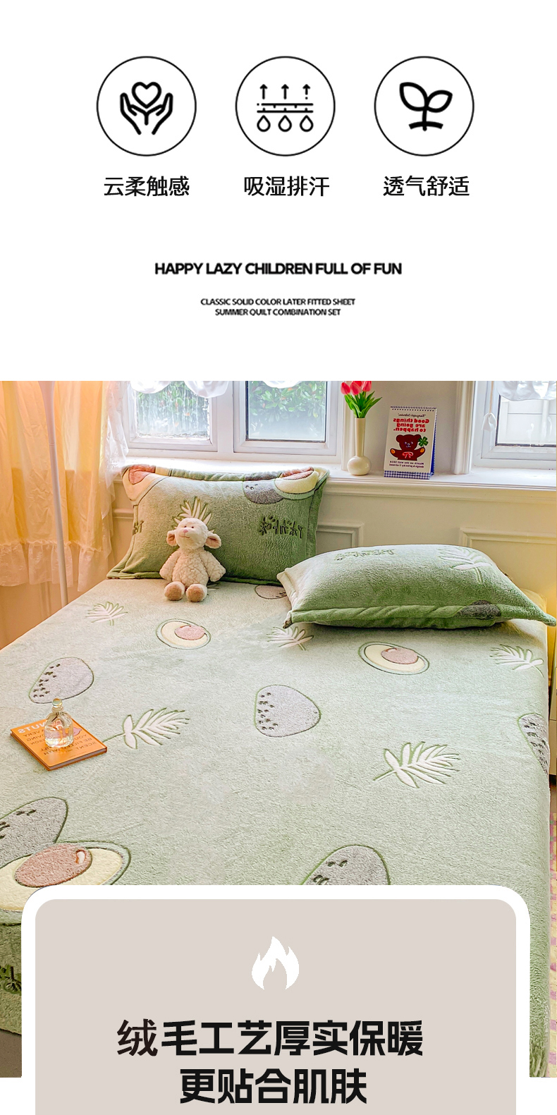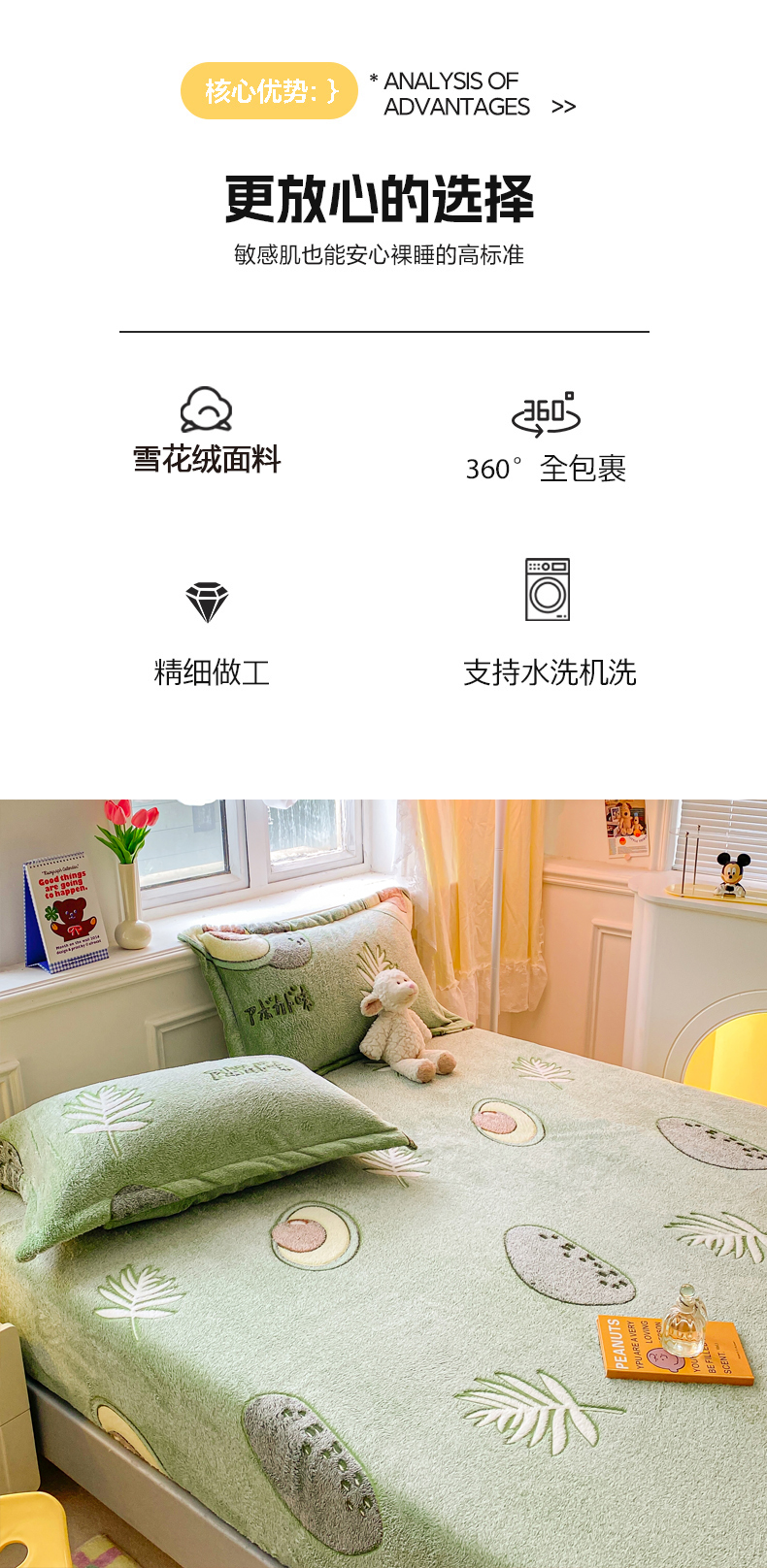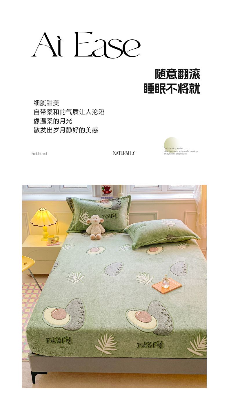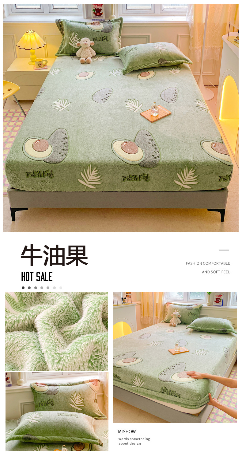 (买家秀 热卖款不断货)A类母婴级牛奶绒床笠珊瑚绒床笠雪花绒床笠罩雪花绒床笠三件套儿童床笠卡通床笠 牛油果