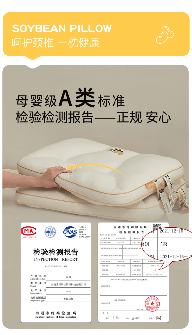 商品名称:(总)境月枕芯坊 2025新款元气满满大豆纤维枕枕头枕芯(专利版仿版必查)