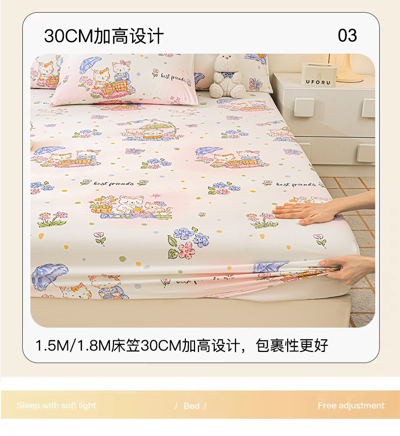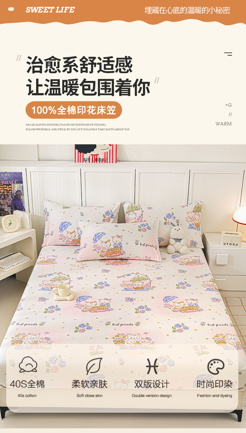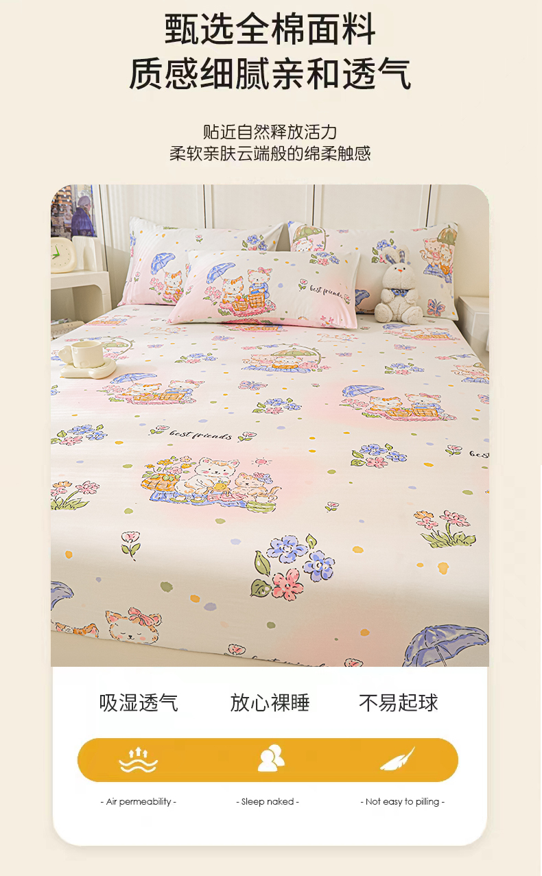 商品名称:金鑫汇家纺 2025新款超好卖全棉单床笠 喵喵日记