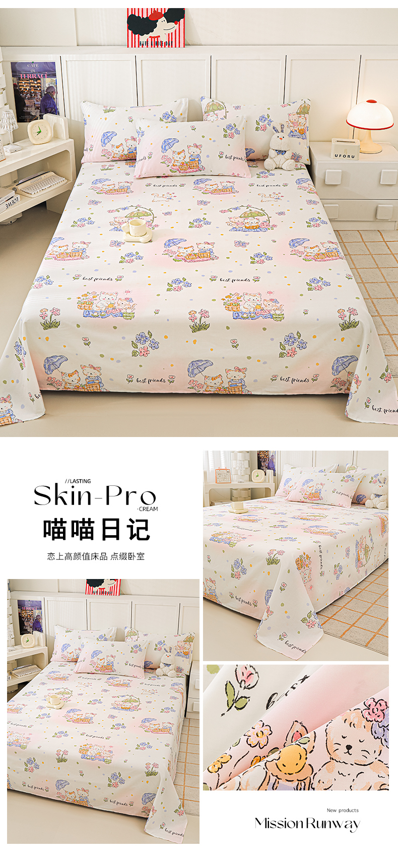 金鑫汇家纺 2025新款超好卖全棉单床笠 喵喵日记