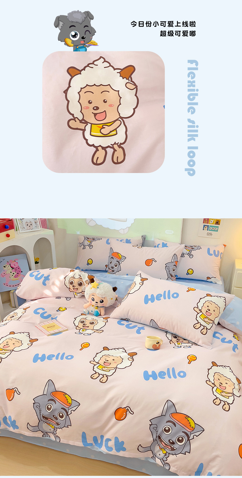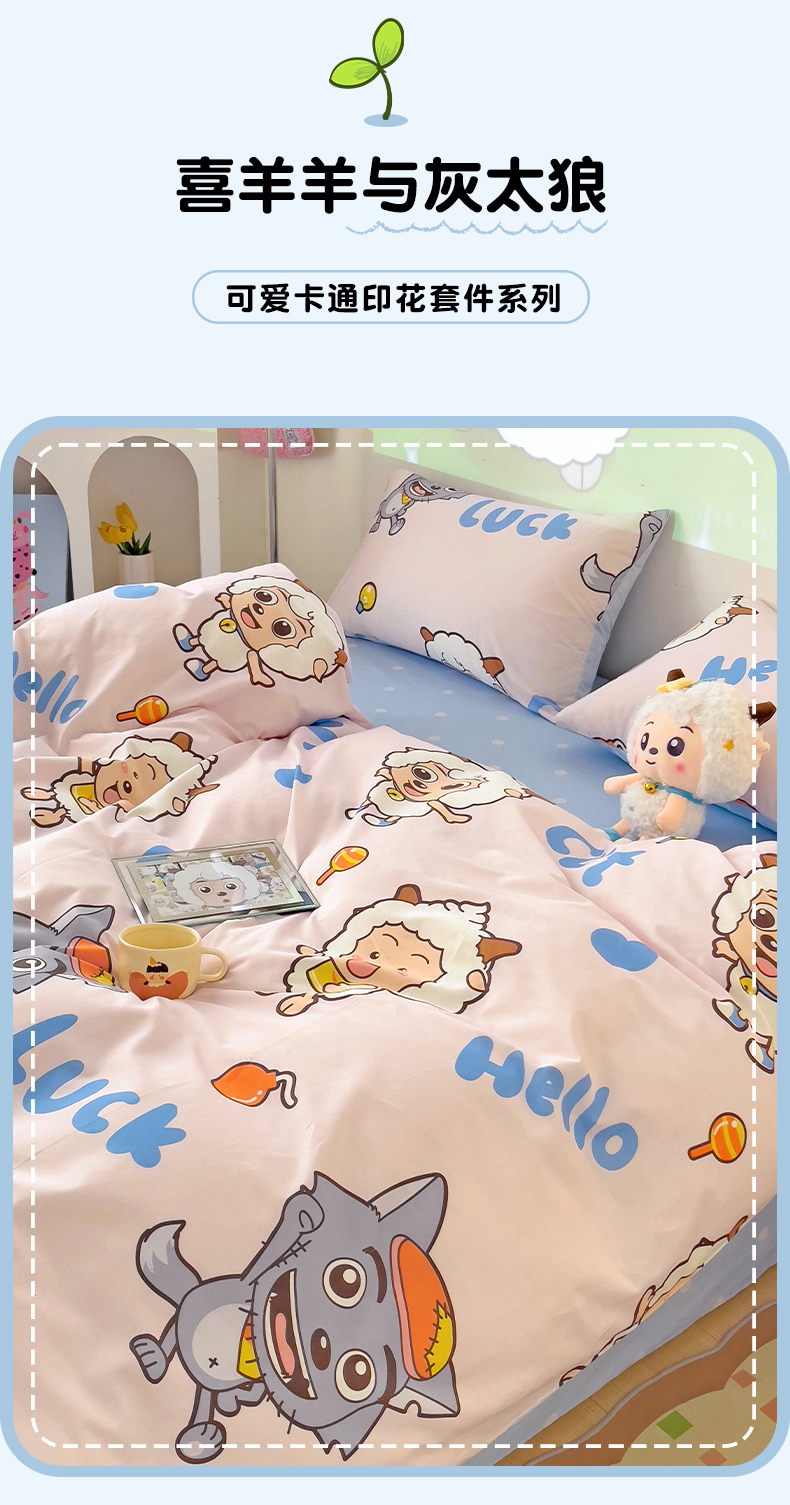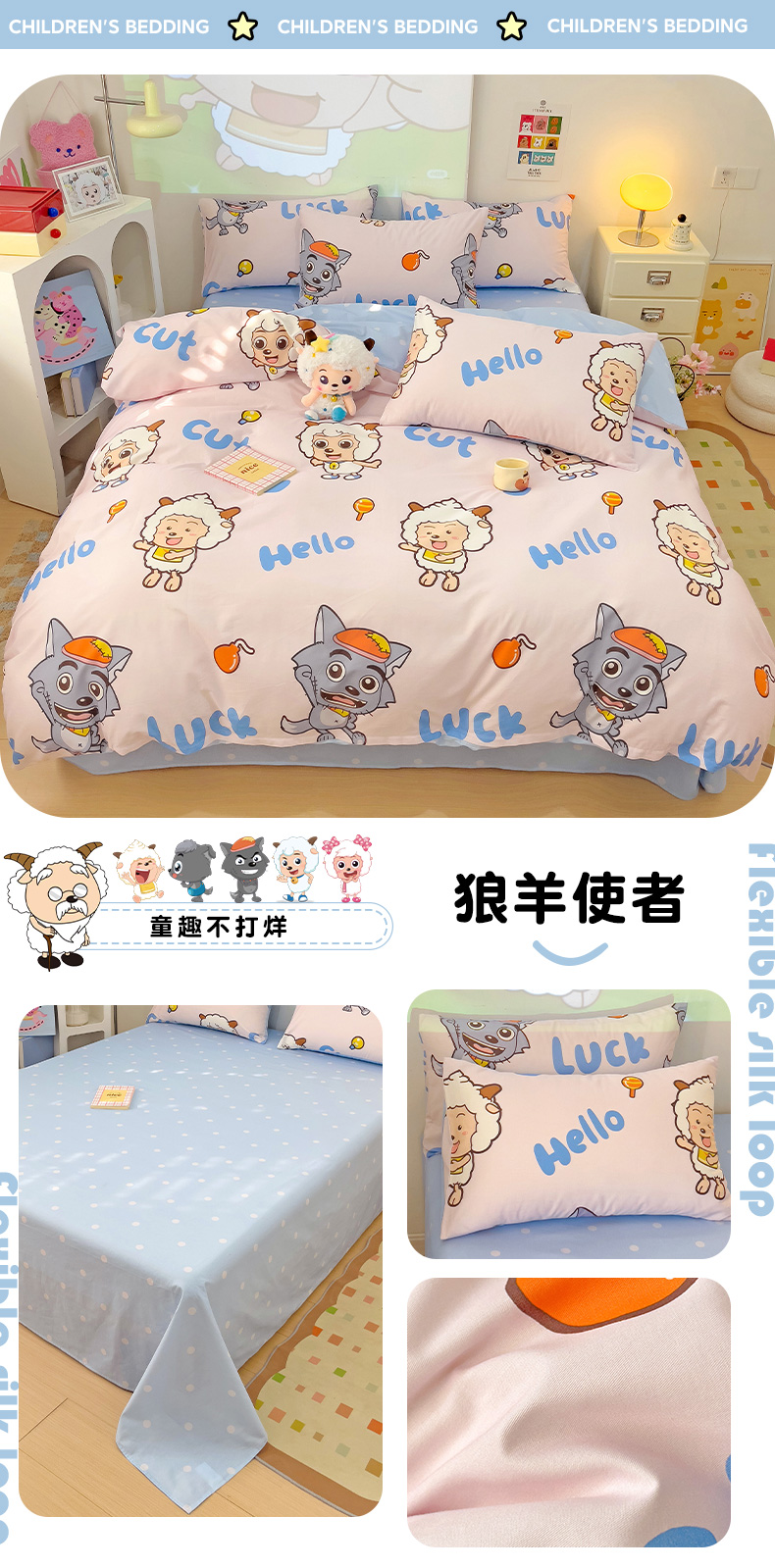 小懒猪 2025新款卡通专版13372全棉喜羊羊系列四件套 狼羊使者