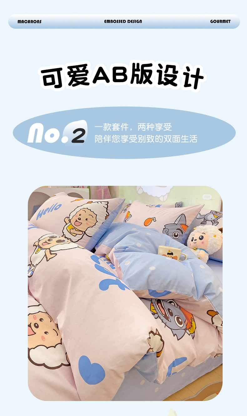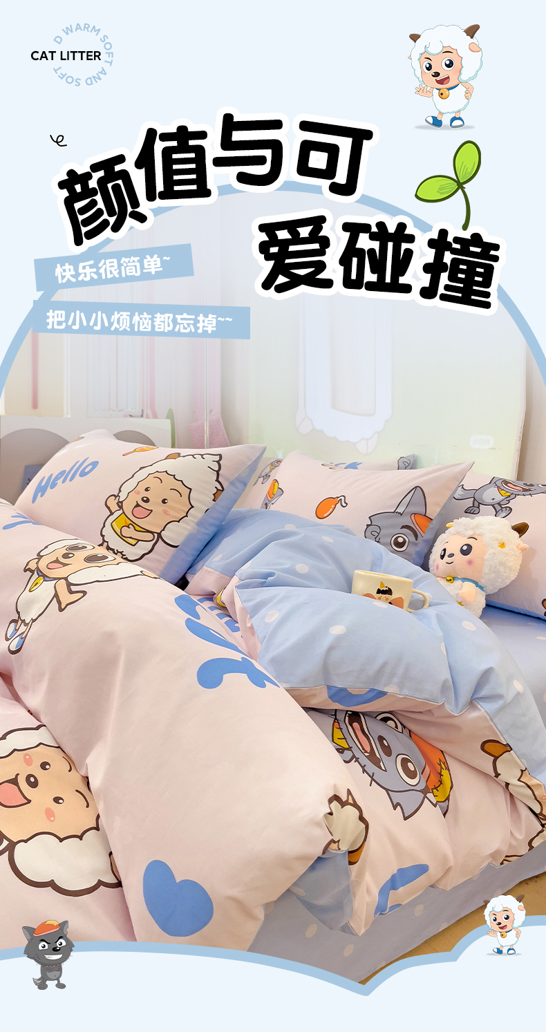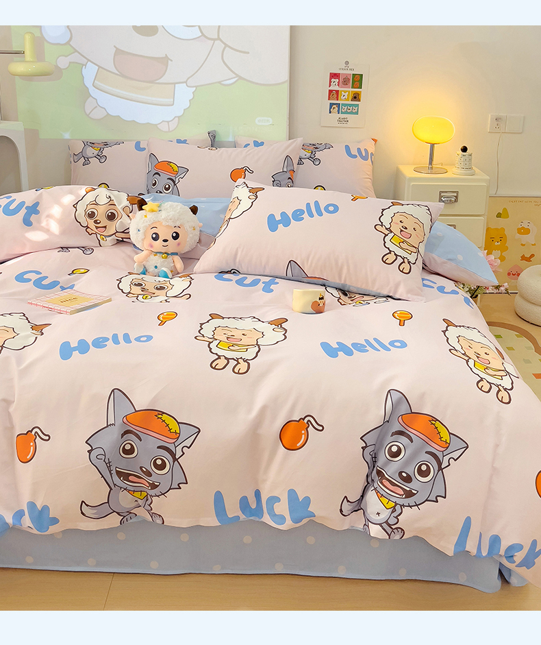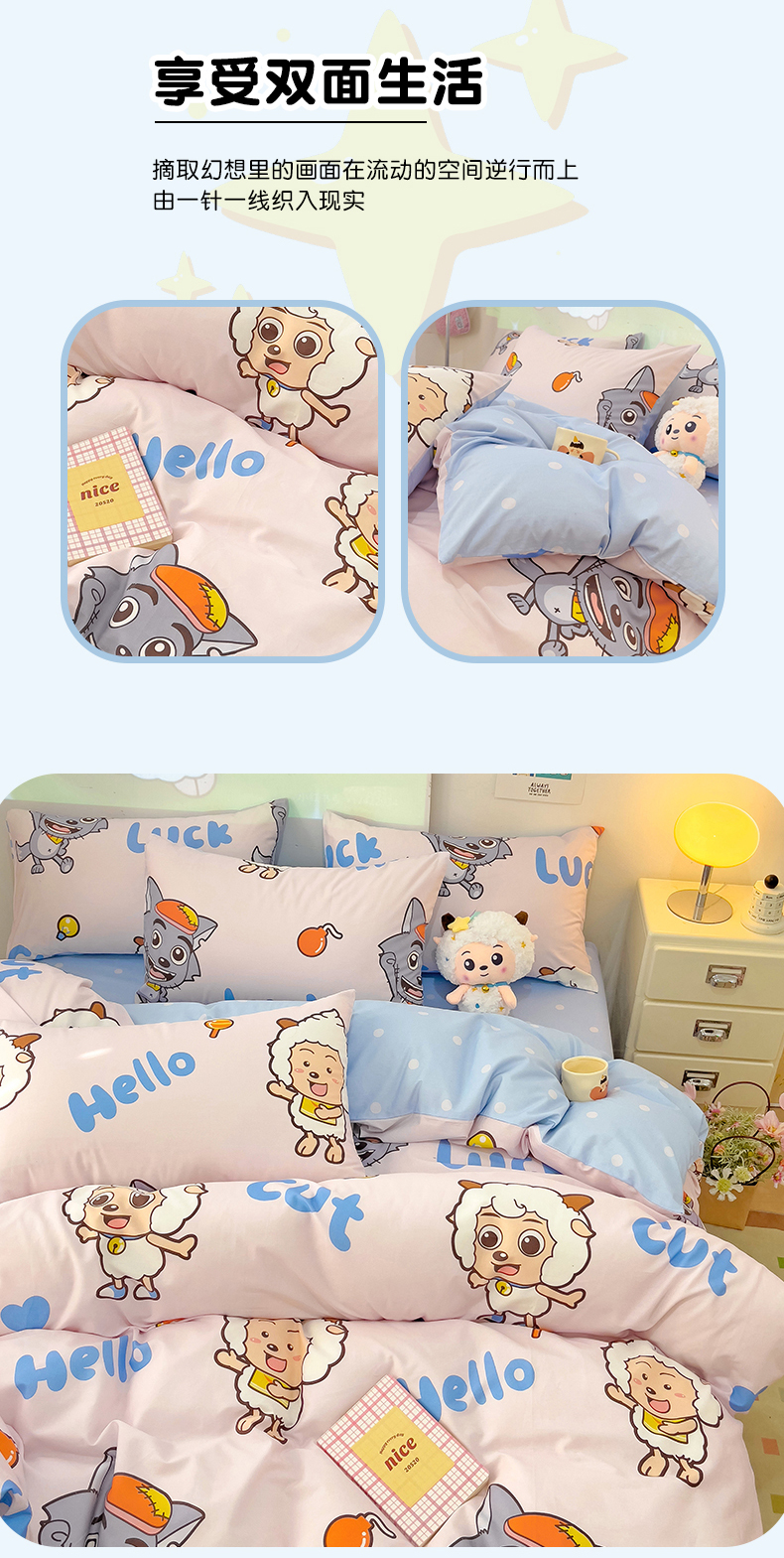 小懒猪 2025新款卡通专版13372全棉喜羊羊系列四件套 狼羊使者