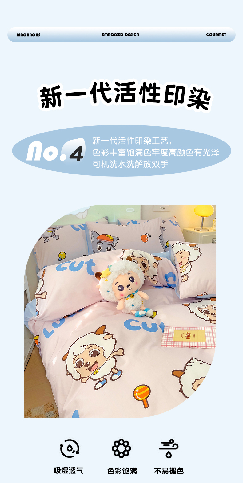 商品名称:小懒猪 2025新款卡通专版13372全棉喜羊羊系列四件套 狼羊使者