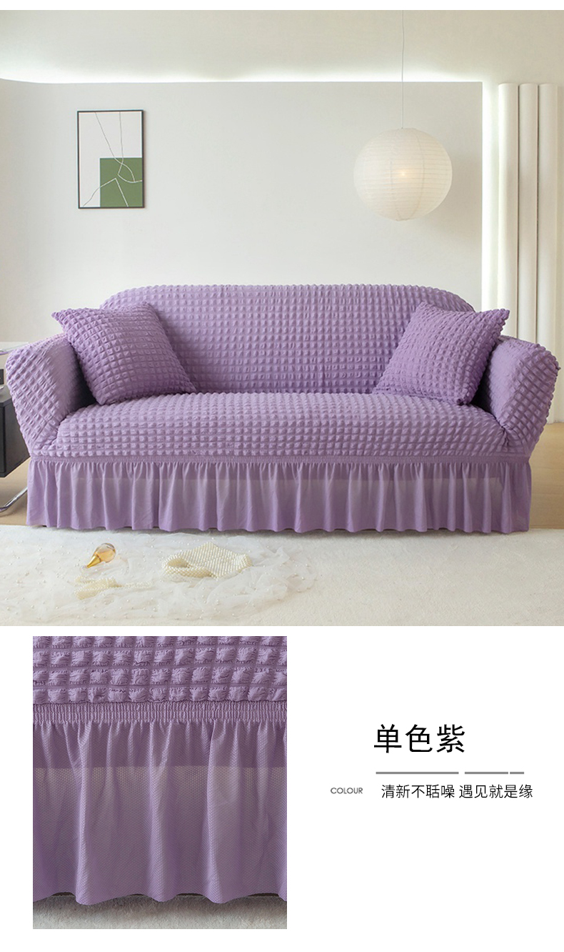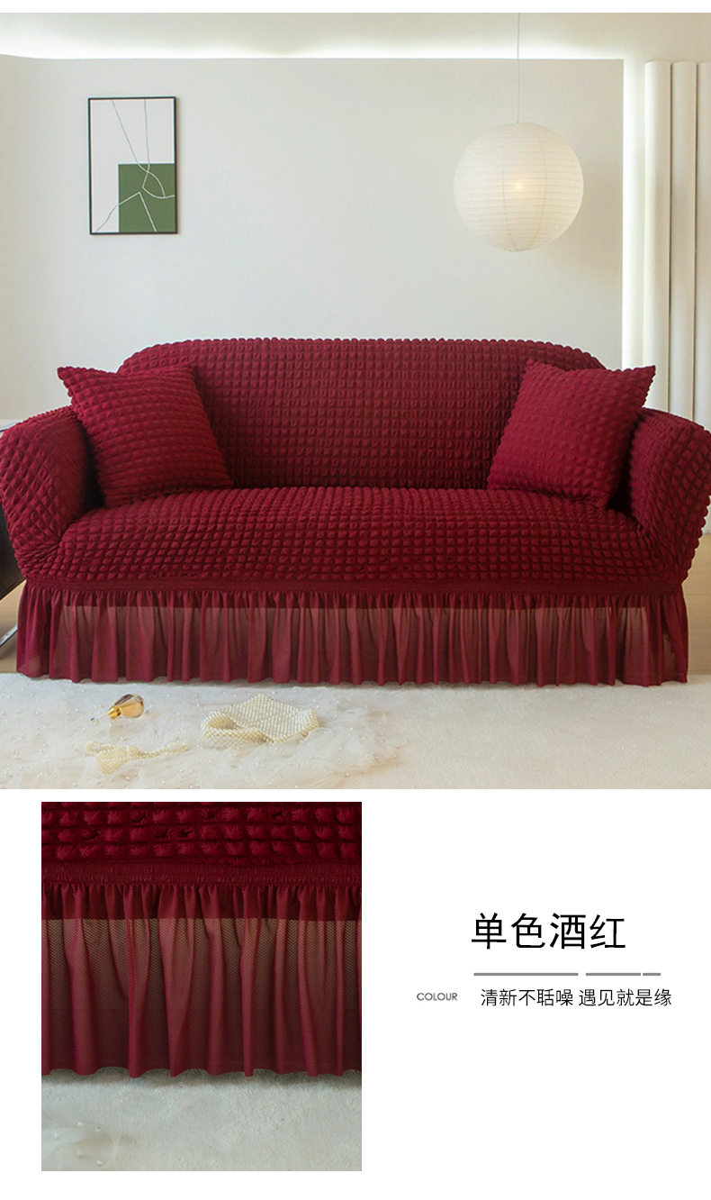 (总)布兰鸟【沙发套】 2025新款泡泡纱无扶手沙发床套【英文裙摆款】,单色酒红,单色蜡白,单色绿,单色米黄,单色中灰,单色紫,孔雀蓝,双色咖,双色蓝