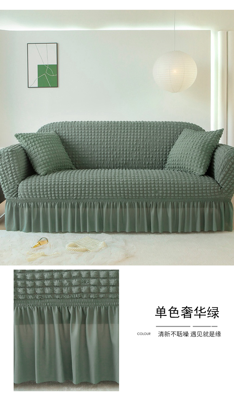 (总)布兰鸟【沙发套】 2025新款泡泡沙发套四人位【英文裙摆款】,单色埃及灰,单色粉,单色黑,单色芥末黄,单色酒红,单色蜡白,单色绿,单色米黄,单色浓咖,单色肉橙,单色深灰,单色希腊蓝,单色中灰,单色中咖,单色紫,豆沙绿,孔雀蓝,奢华绿,双色咖,双色蓝,双色紫